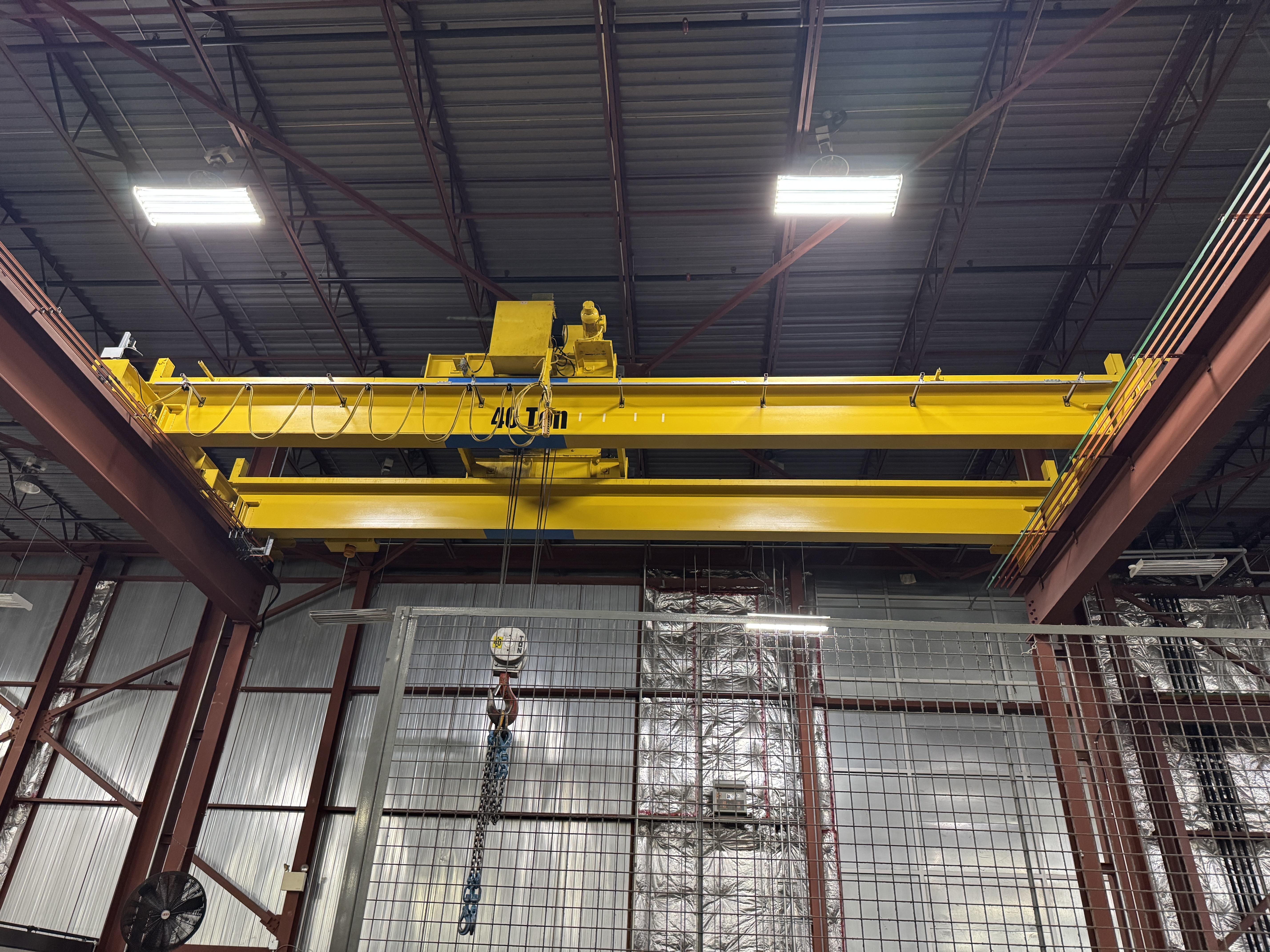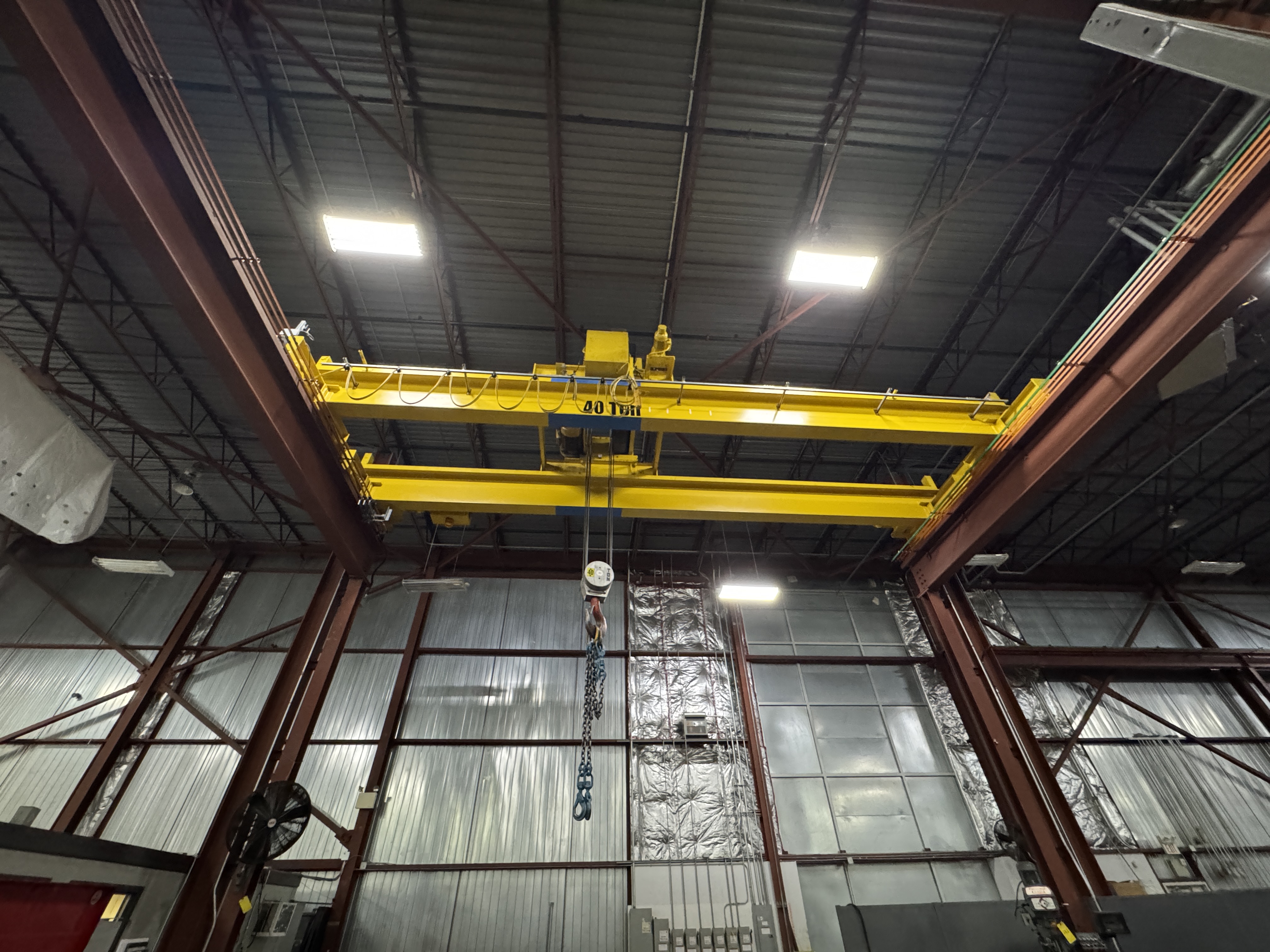 Detroit Hoist double-girder bridge crane, ser. no. 149494, 40-ton cap., top-mounted, approx. 33.5 ft. span w/ remote control (excluding runway and busbar) (Subject to Delayed Removal)