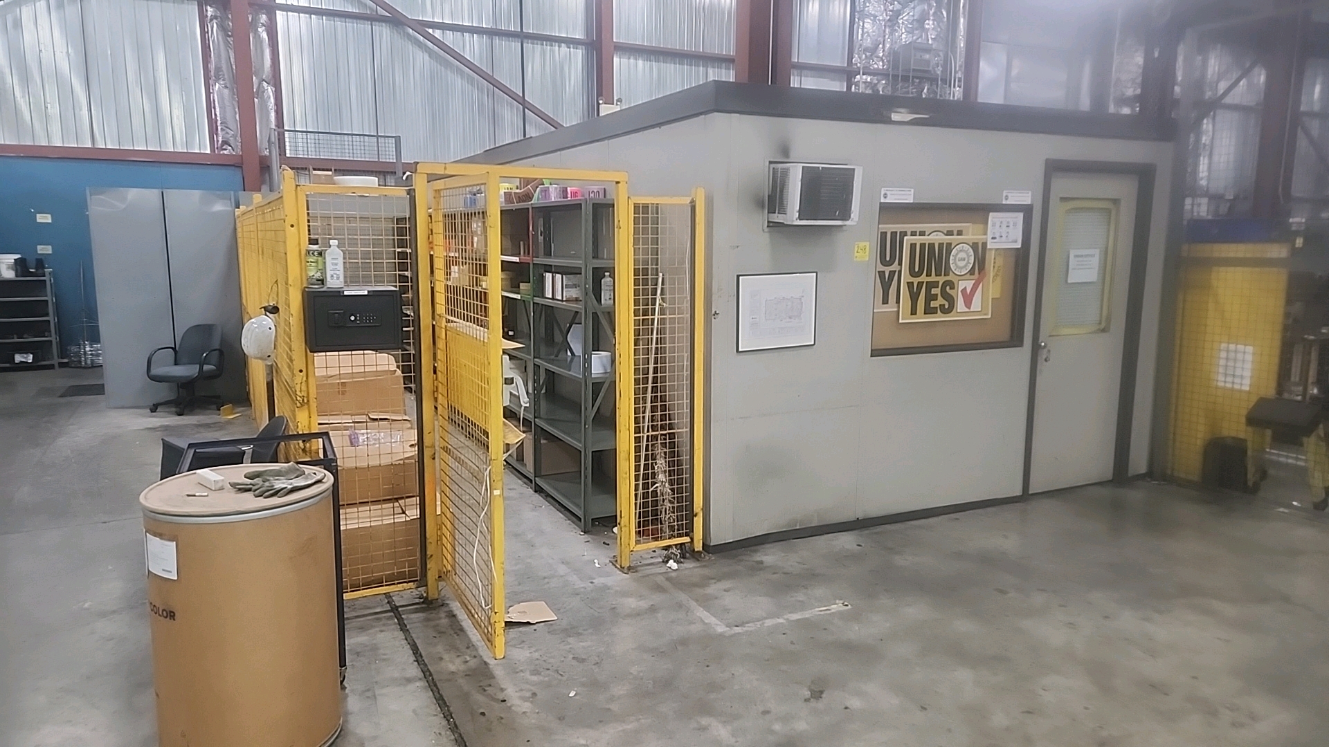 mobile office, approx. 12 ft. x 12 ft. c/w caged area (contents included) printers, computers, and IT items are not included