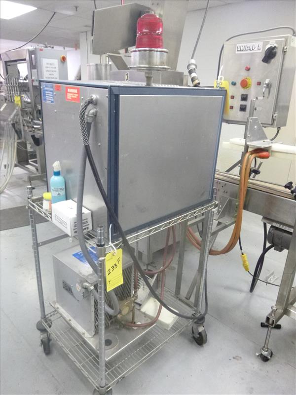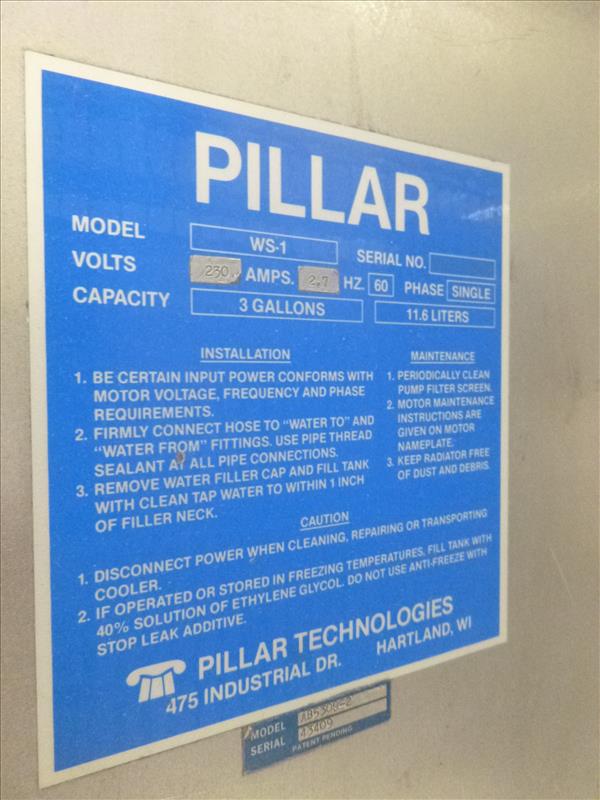 Pillar induction cap sealer, model AB57 16-9, ser. no. 43409, 2000 watts, 230 volt c/w water chiller model WS-1 (2009)