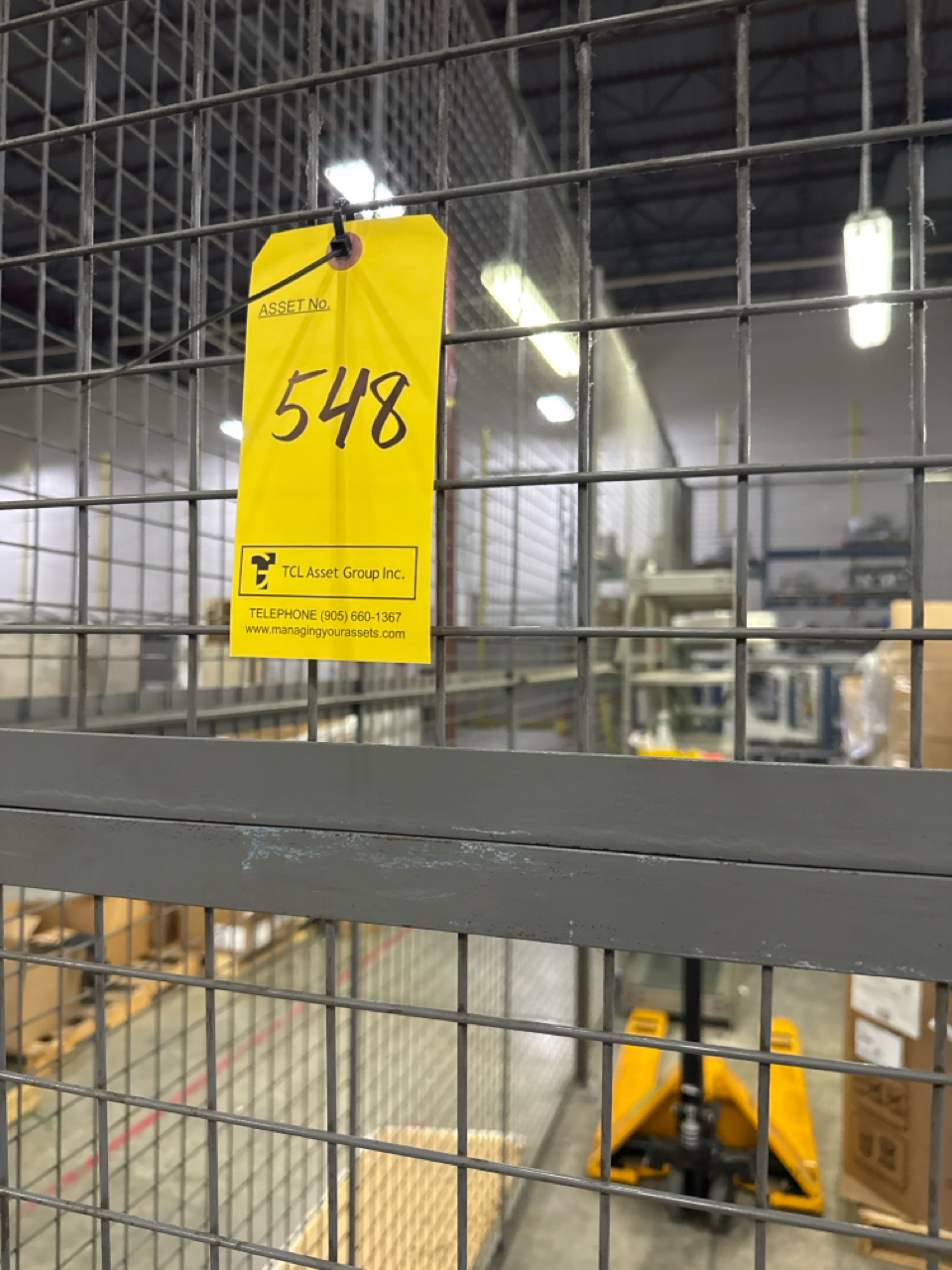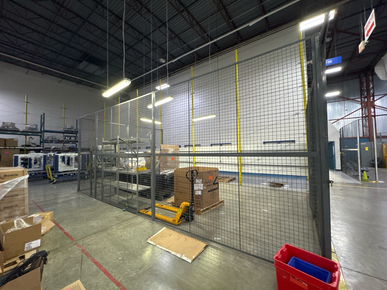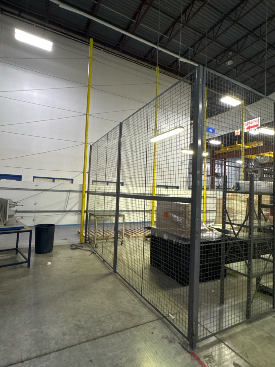 Warehouse security cage, 10 feet height, approximately 55 feet in length. Contents in photo not included.