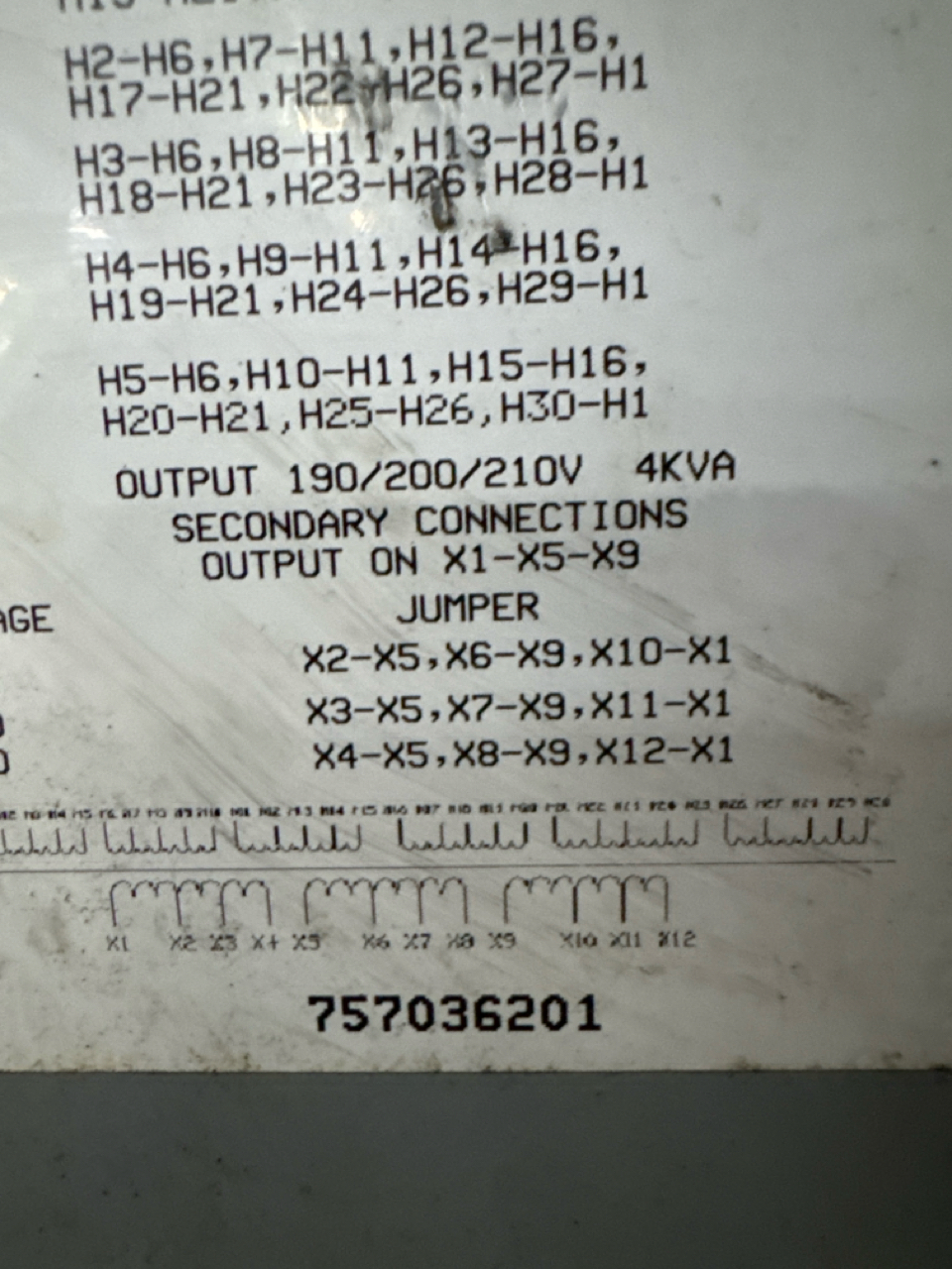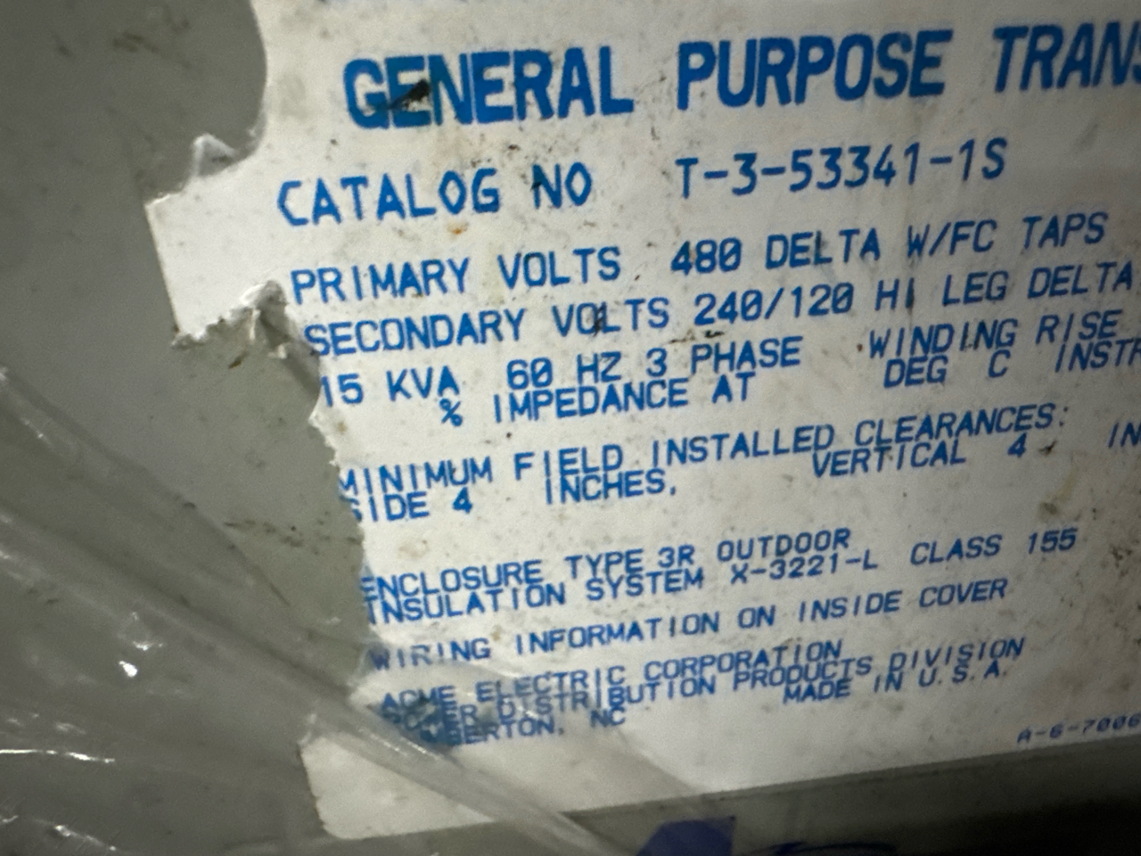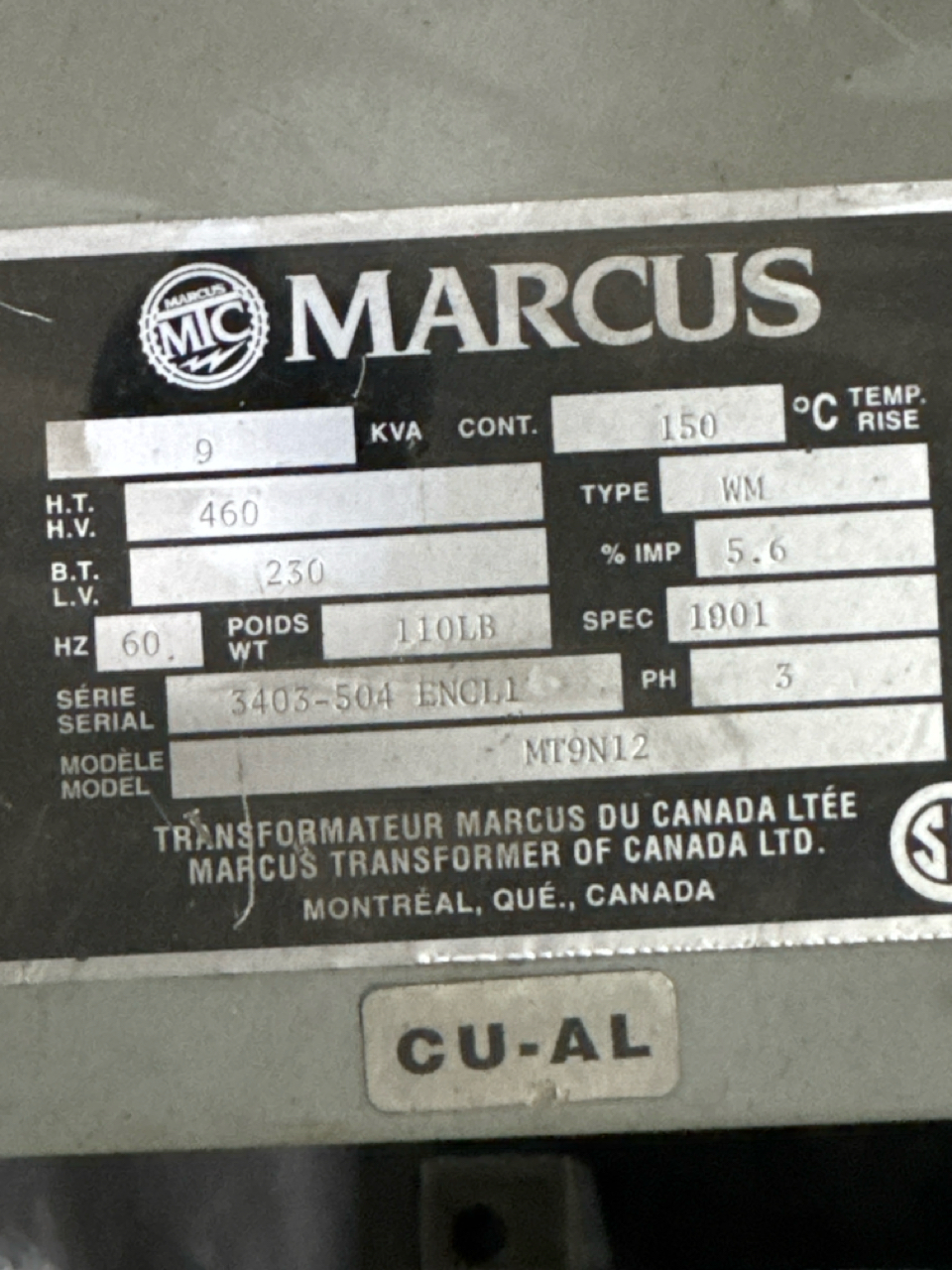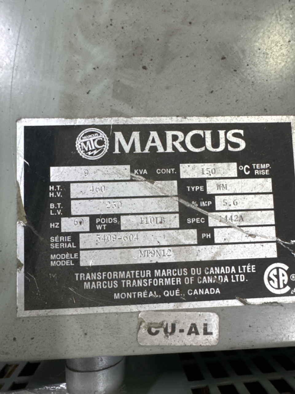 5 transformer, (2) 9 KVA, (1) 15 KVA, (1) 4KVA, (1) 1 KVA, and Marcus part.