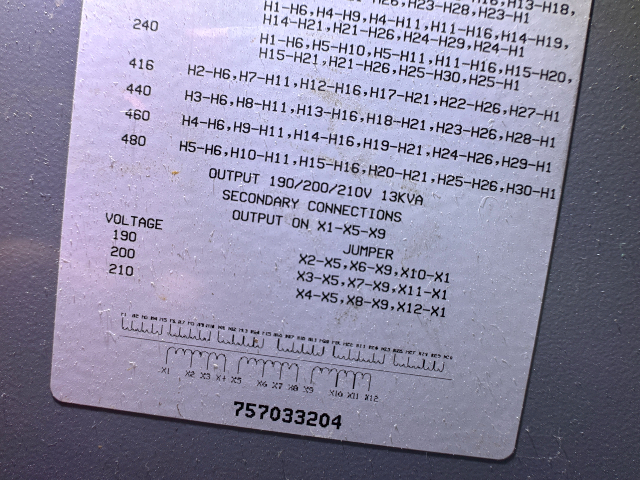 (5) transformers, (1) 30 KVA, (1) 9 KVA, (1) 13 KVA, (1) 9 KVA,