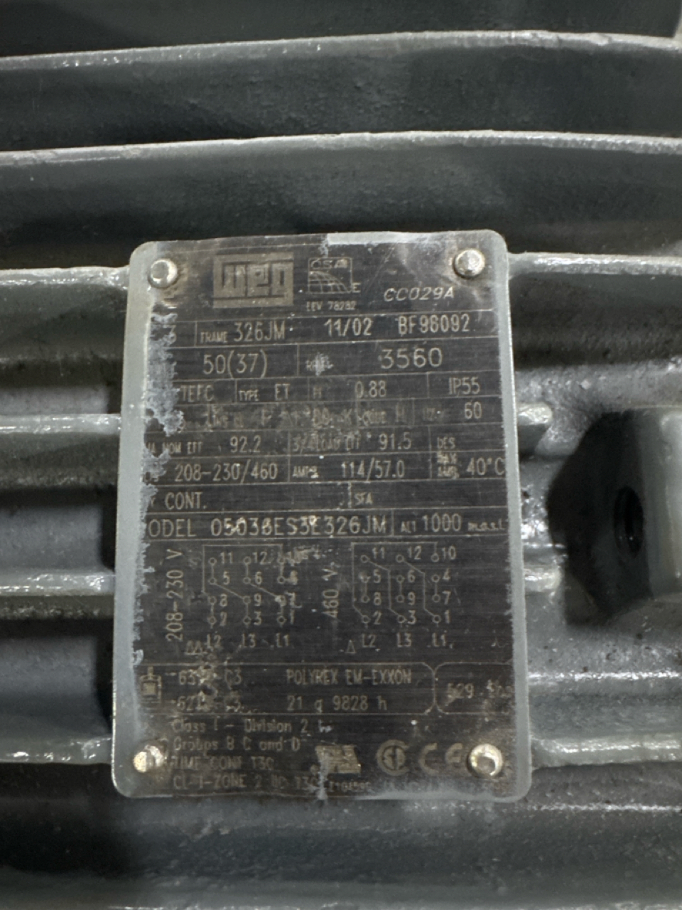 WEG, Mod 0503BES3E326JM, 50 HRSP Motor