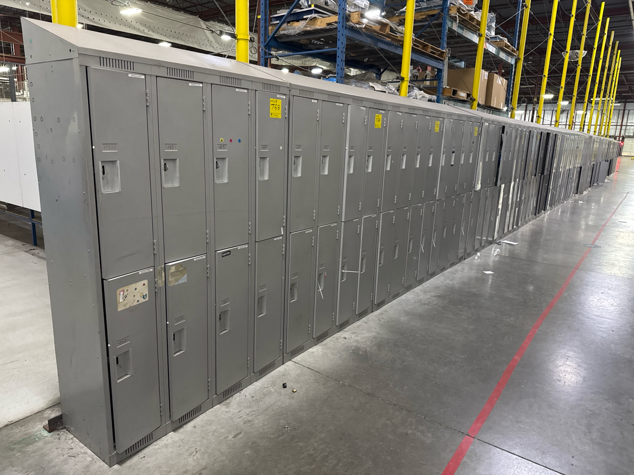 13 sectional, 8 person per section lockers. 18 in depth, 4 ft length, 6.4 ft height.