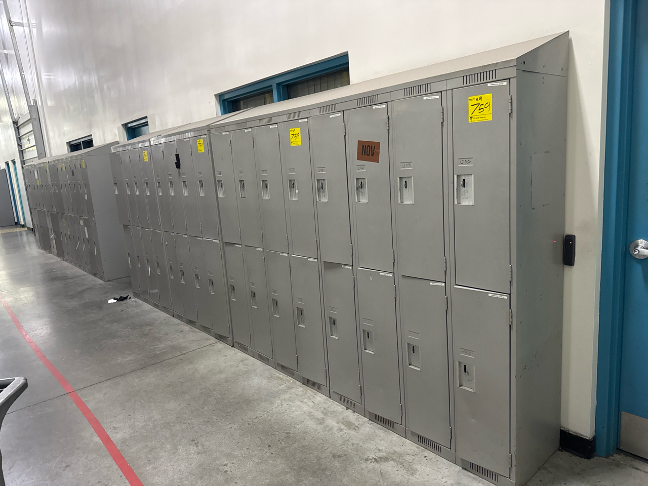 9 sectional, 8 person per section lockers. Grey colour, 18 in depth, 4 ft length, 6.4 ft height.