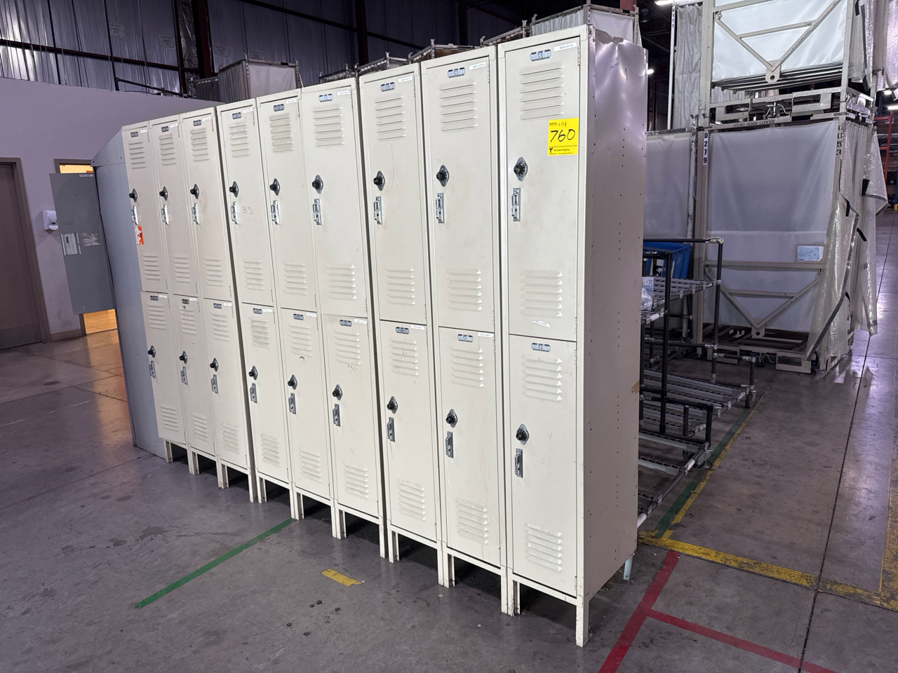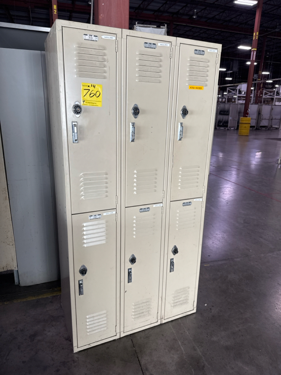14 sectional, 6 person per section lockers. Beige colour, 18 in depth, 3 ft length, 6.4 ft height.