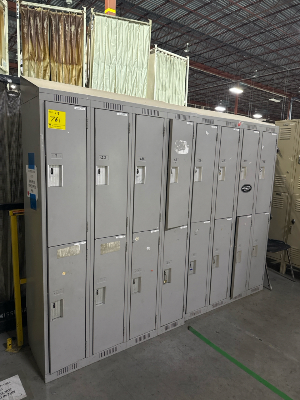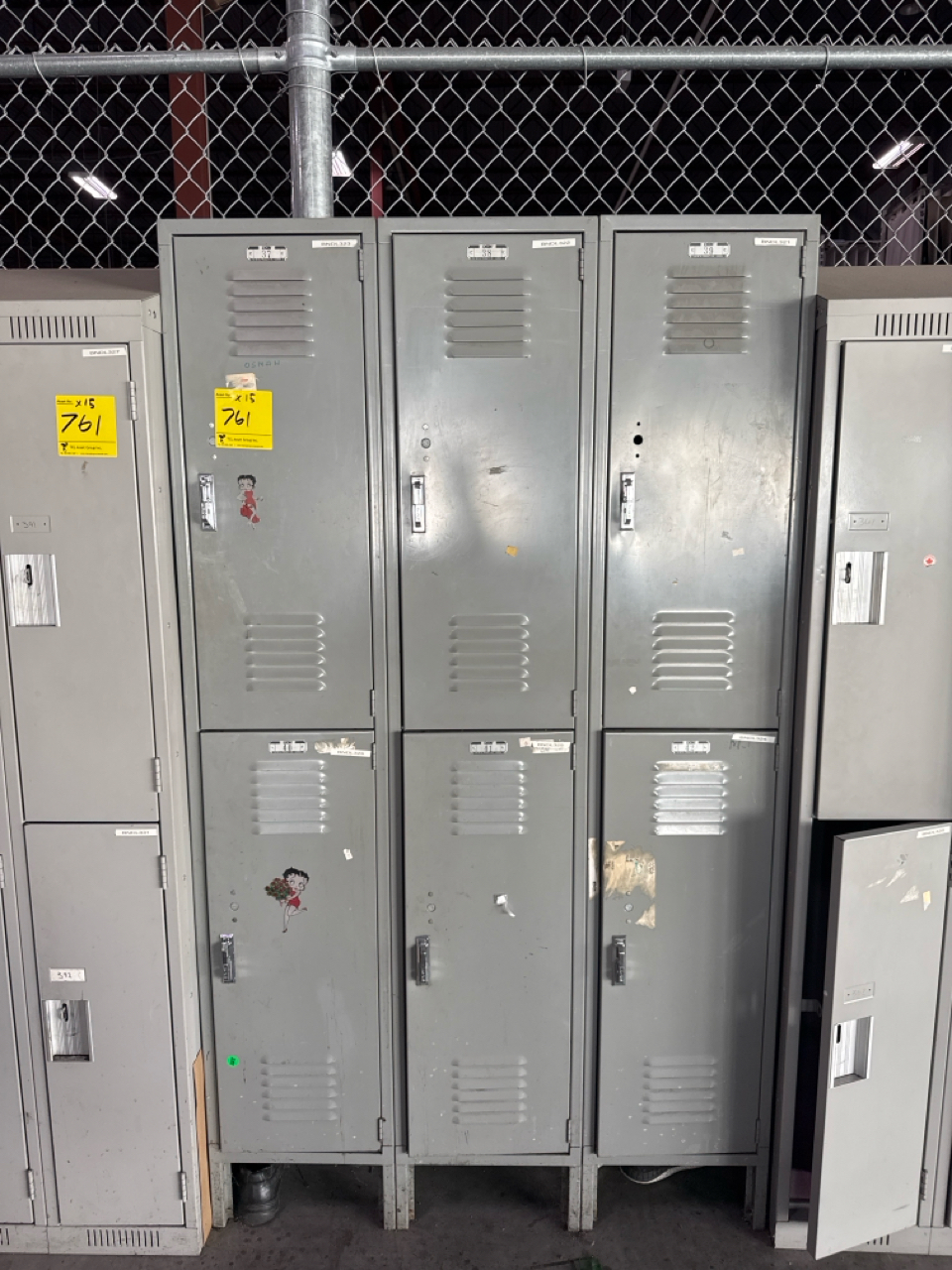 15 sectional, 8 person per section lockers. Grey colour, 18 in depth, 4 ft length, 6.4 ft height.