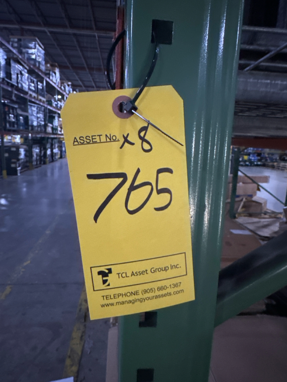 (8) sectional pallet racking, approximately 18 ft highest height, lowest height 16 ft, 3.5 ft depth, 10 ft length. Contents on pallet racking not included.