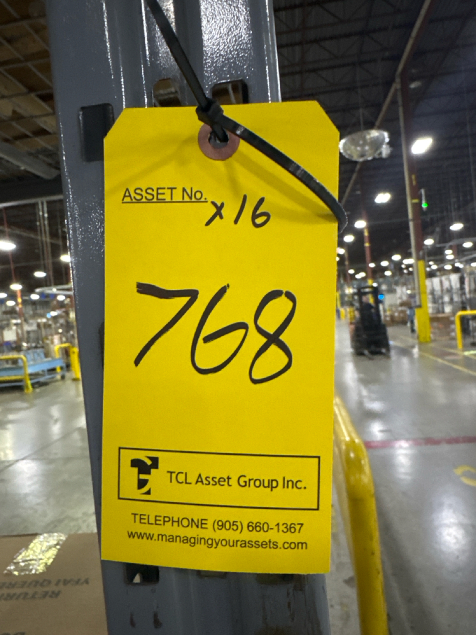 (16) sectional pallet racking, approximately 18 ft height, 4 ft depth, 8 ft length. Contents on pallet racking not included.