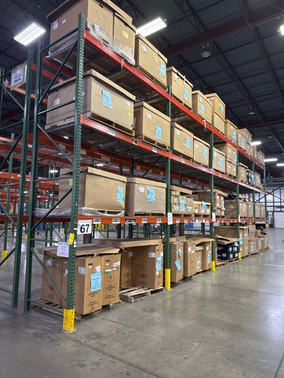 (10) sectional pallet racking, approximately 16 ft height, 4 ft depth, 9 ft length. Contents on pallet racking not included.