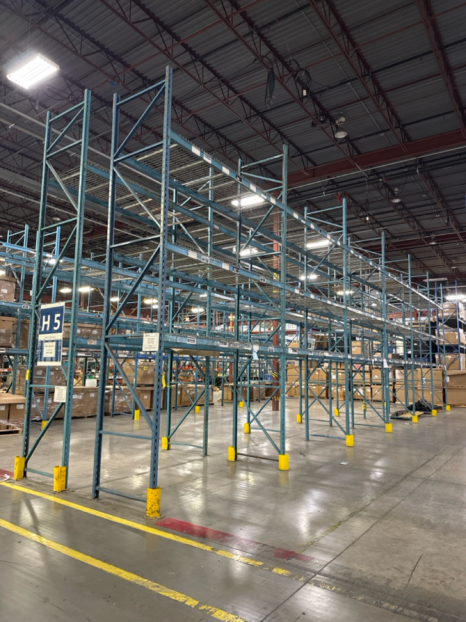 (12)sectional pallet racking, approximately 19 ft height, 3.5 ft depth, 10 ft length. Contents on pallet racking not included.