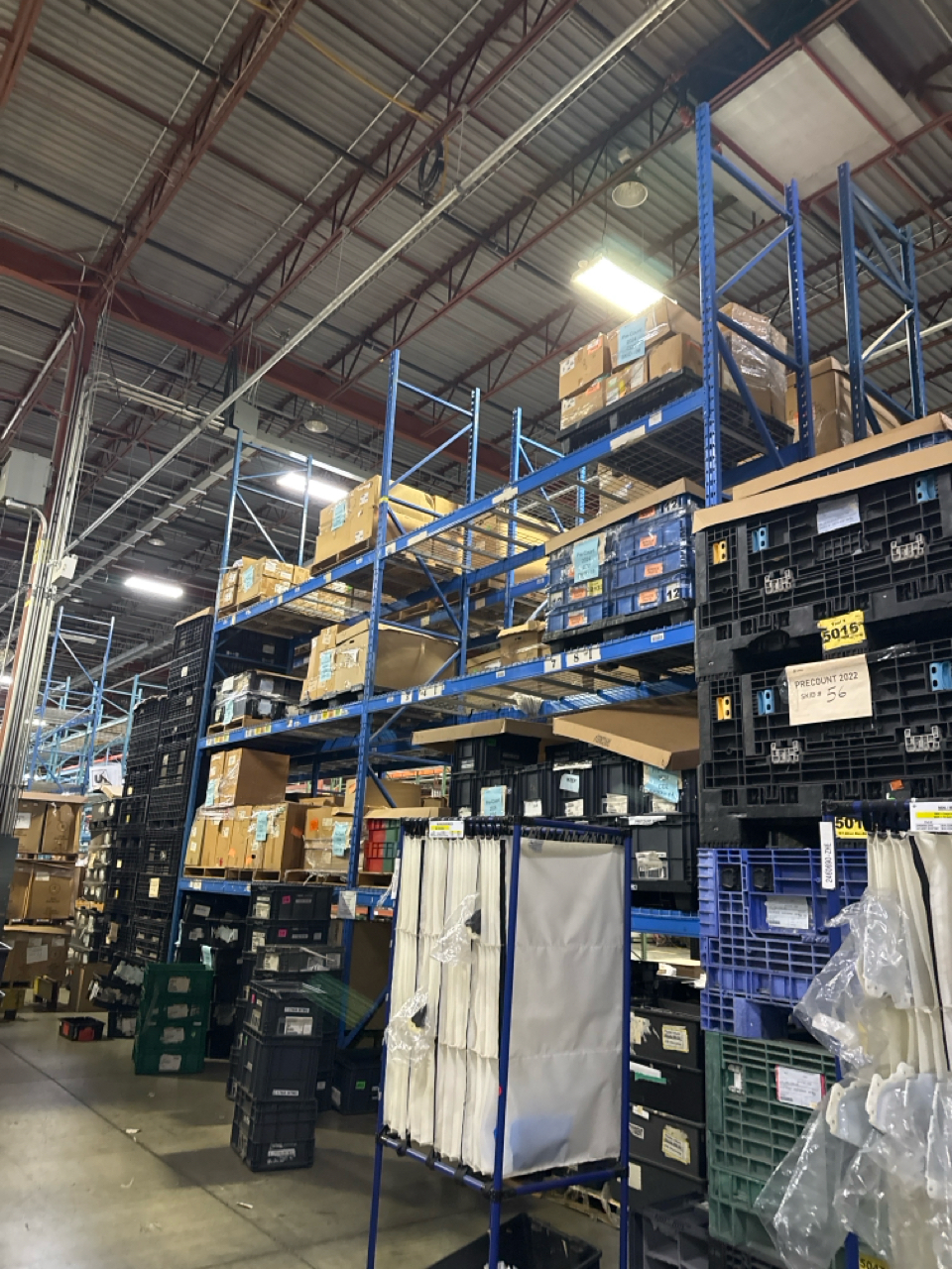 (4)sectional pallet racking, approximately 22ft height, 3.5 ft depth, 12 ft length. Contents on pallet racking not included.
