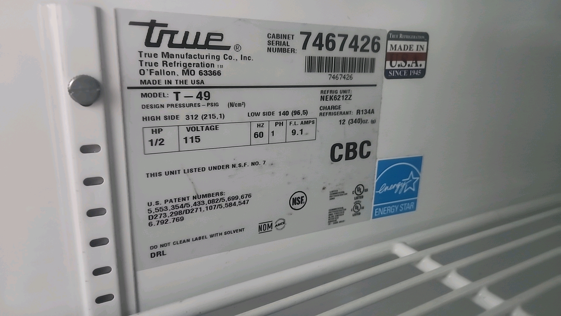 True refrigerator, mod. T-49, ser. no. 7467426, 2-door, stainless steel w/ casters