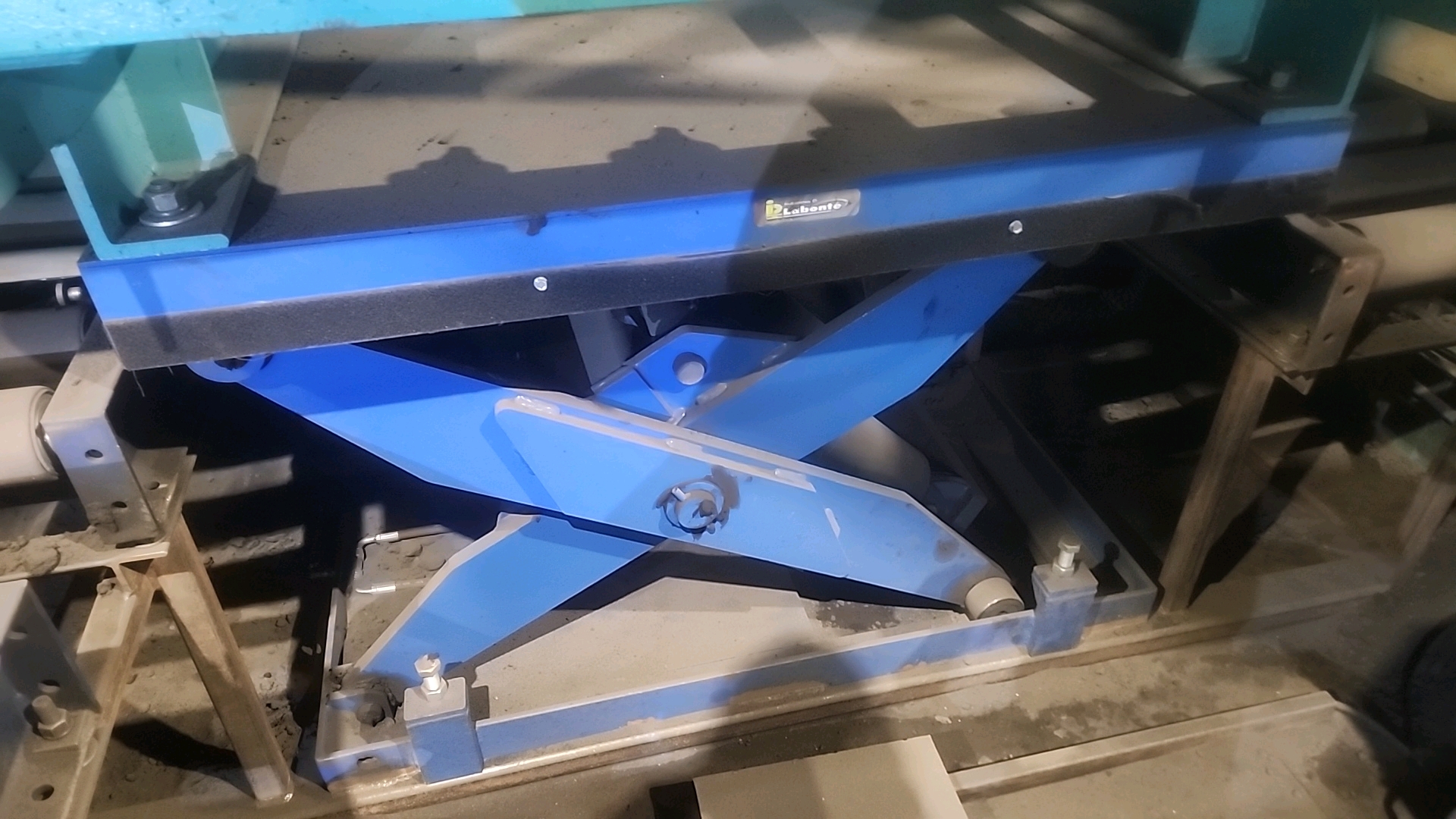32 in. x 48 in. scissor lift table w/ roller conveyor top [Loc. Melting/Pouring]