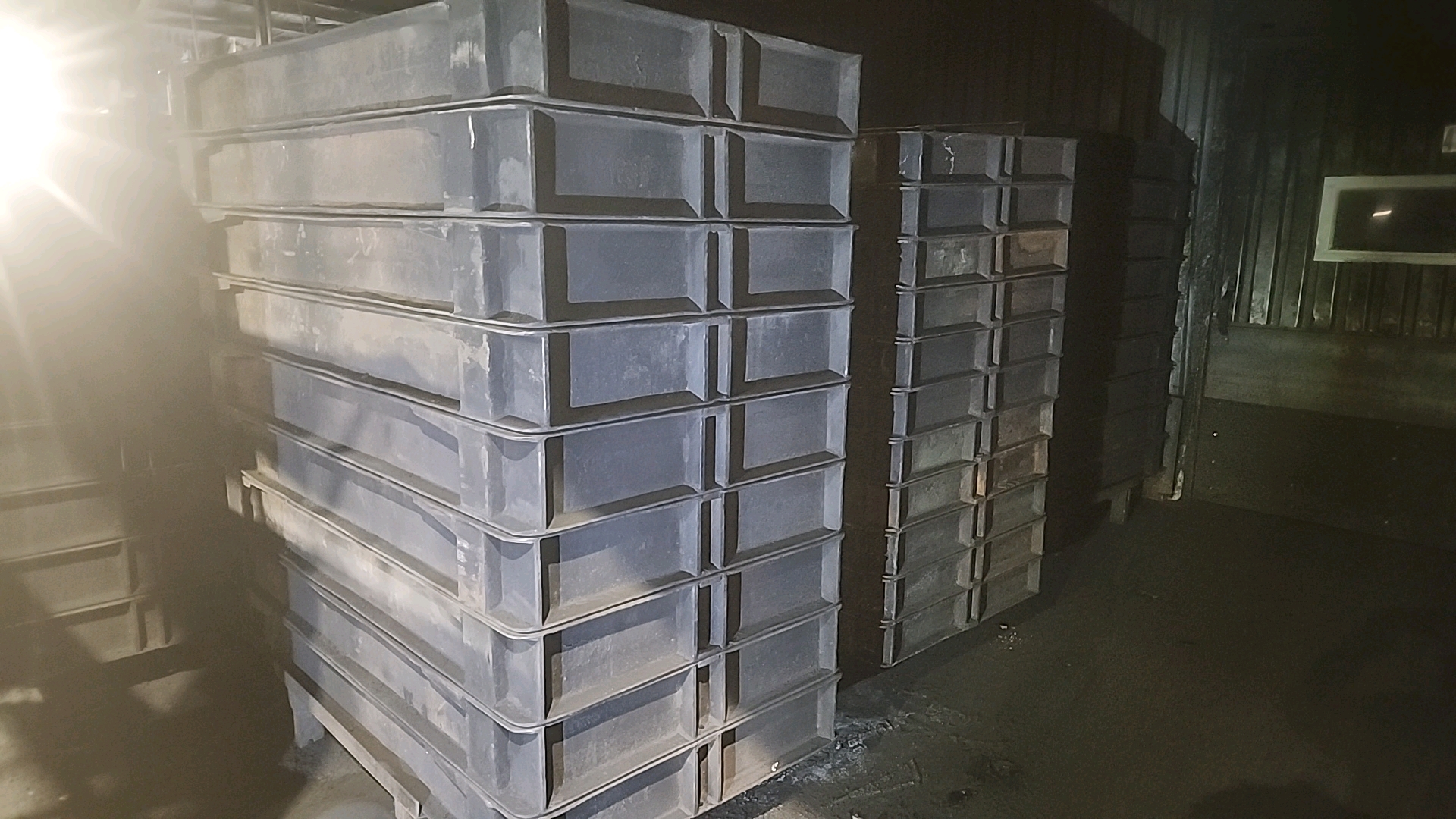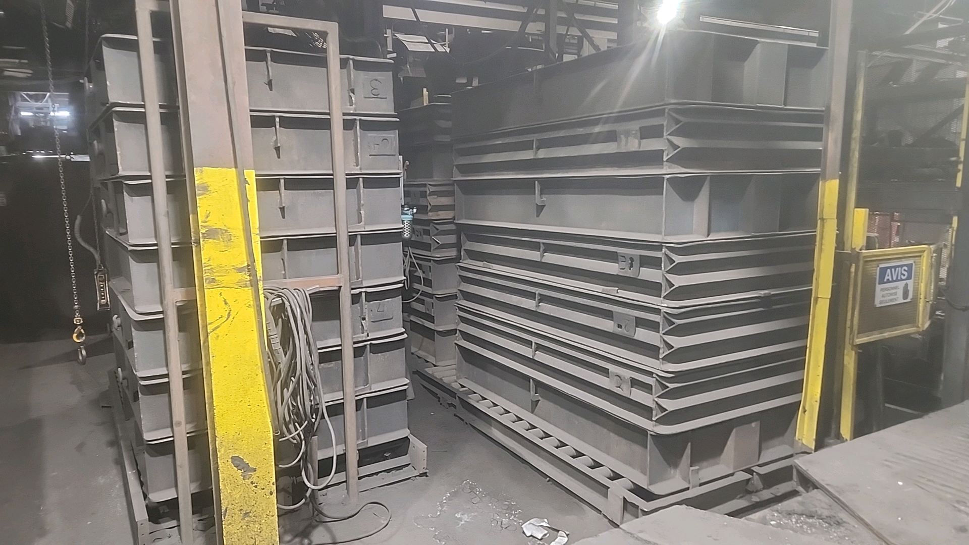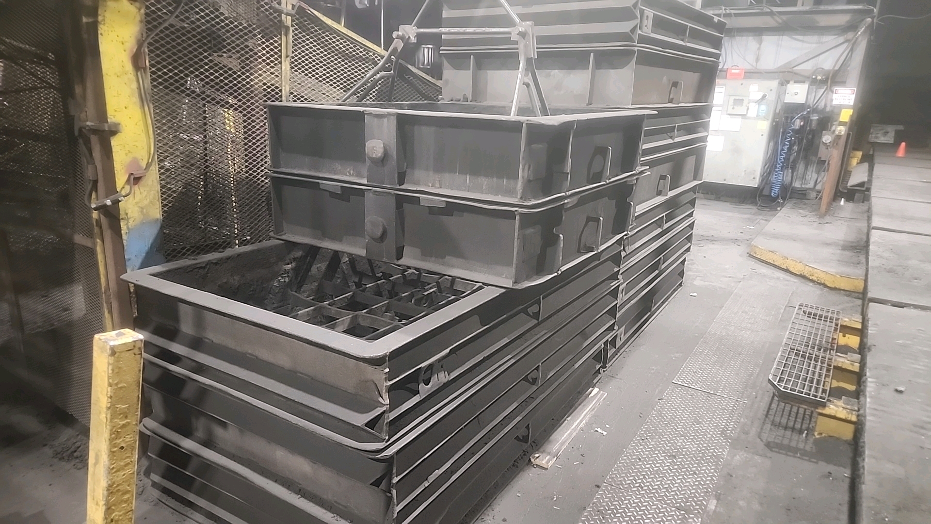 large quantity of molding flasks inside and outside, various sizes [Loc. Melting/Pouring/Yard]