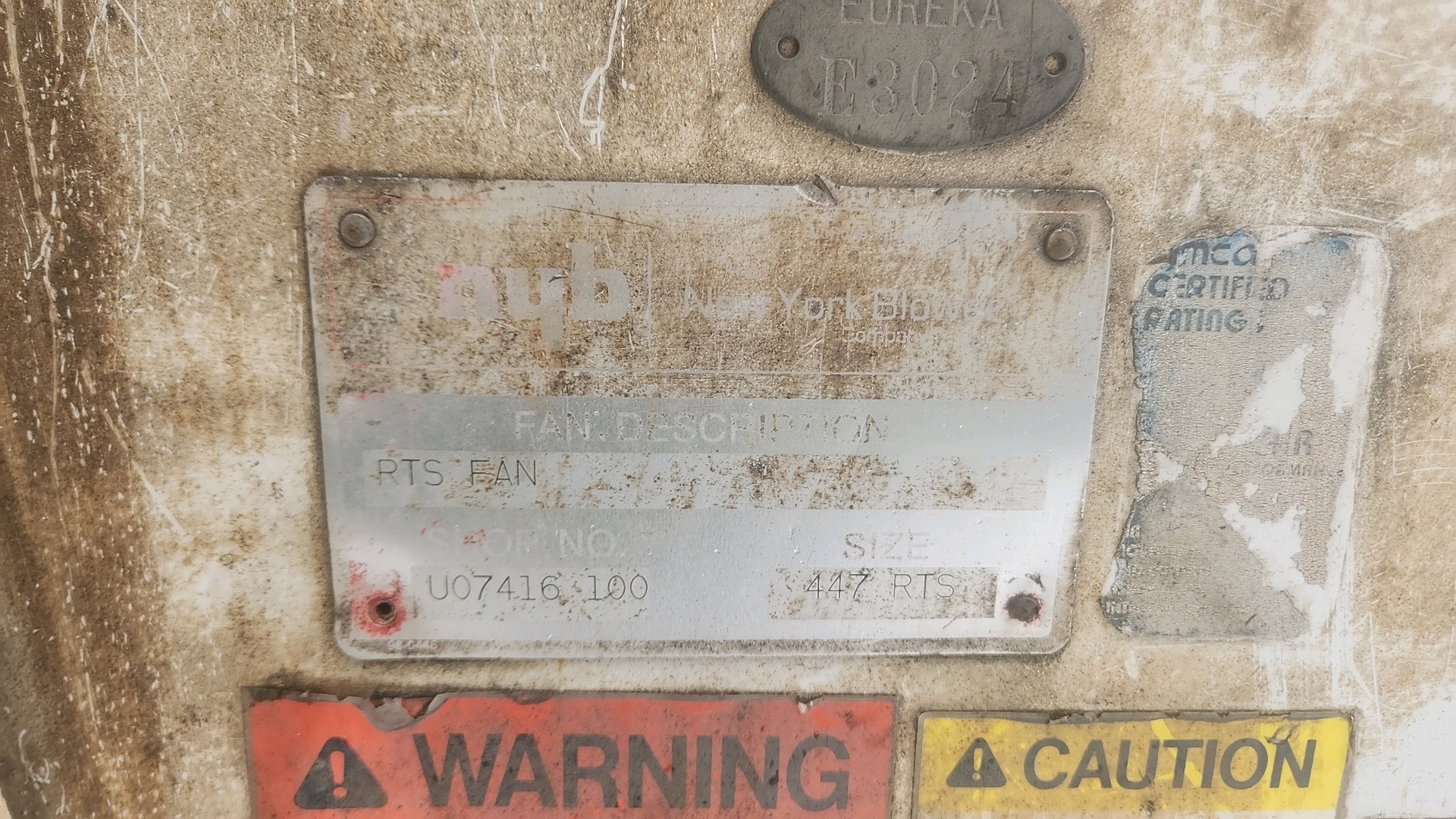 Wheelabrator mod. 120 jet III approx. 64,000 cfm pulse bag dust collector w/ New York size 447 blower and 300 hp motor and controls w/ soft start [Loc. Yard]
