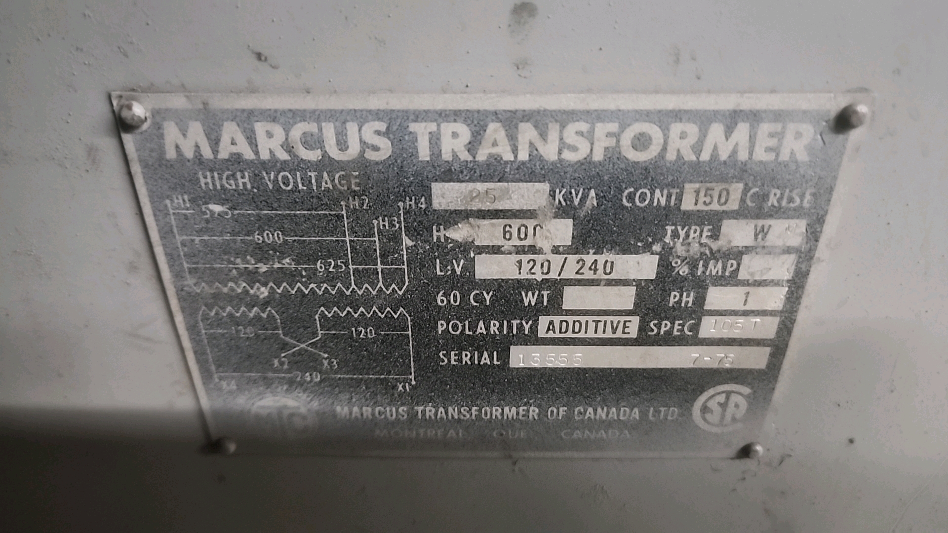 MTC transformer, 25 KVA [Loc. Above Melting/Pouring]