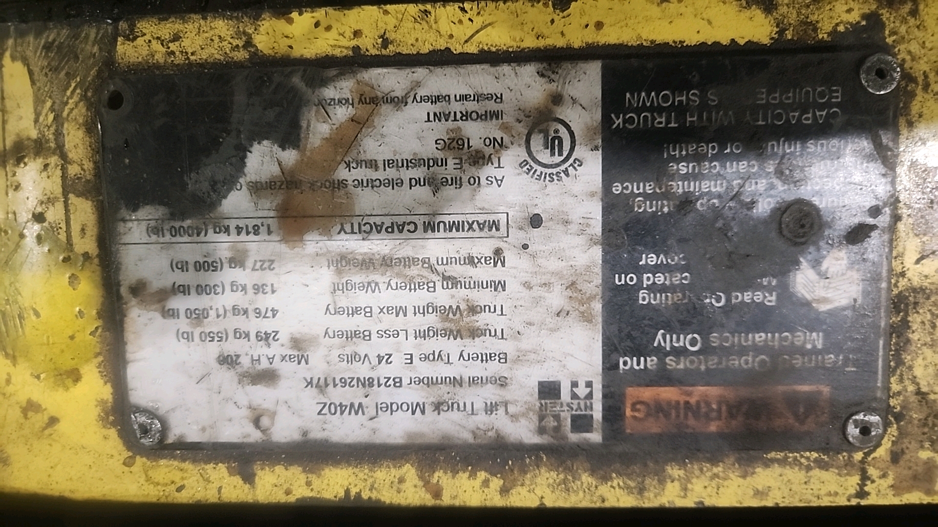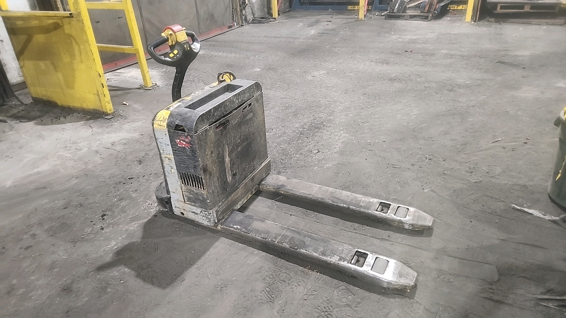 Hyster walk-behind pallet truck, mod. W402, ser. no. R218N26117K, 4000 lbs. cap., 1273 hrs., 24 V electric w/ integrated charger [Loc. Production]