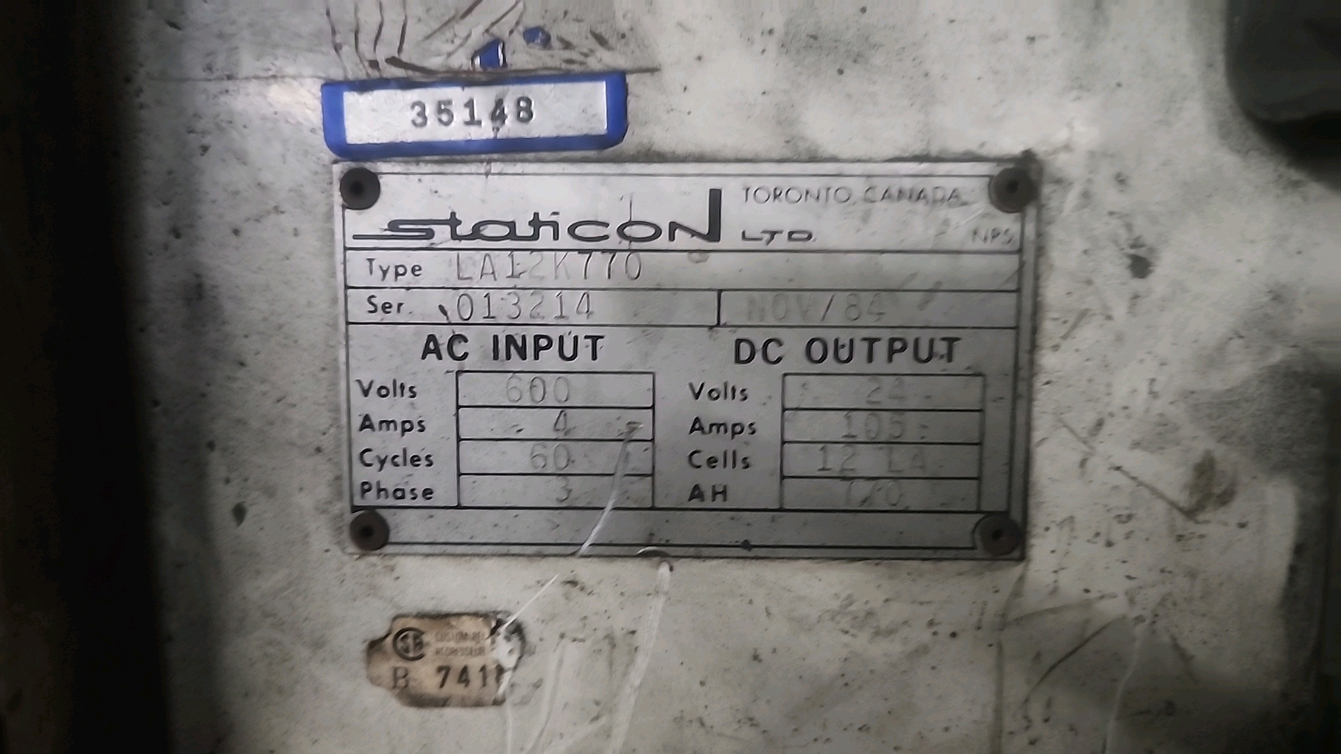 Straticon Varta charger, mod. LA12K770, ser. no. 013214, 24 V [Loc. Production]