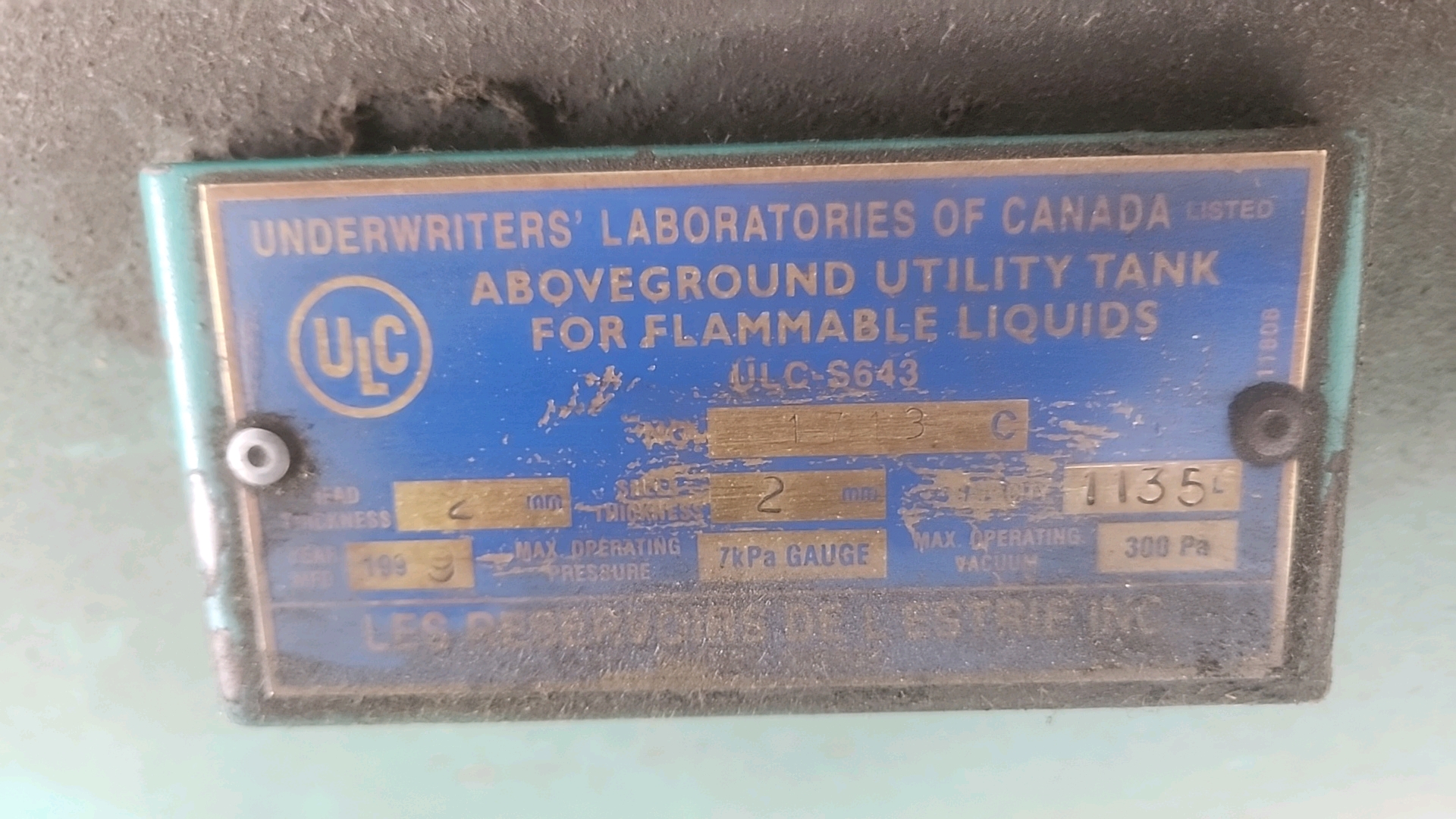 Ecocycle diesel fuel tank, 1135 L cap. [Loc. Yard]