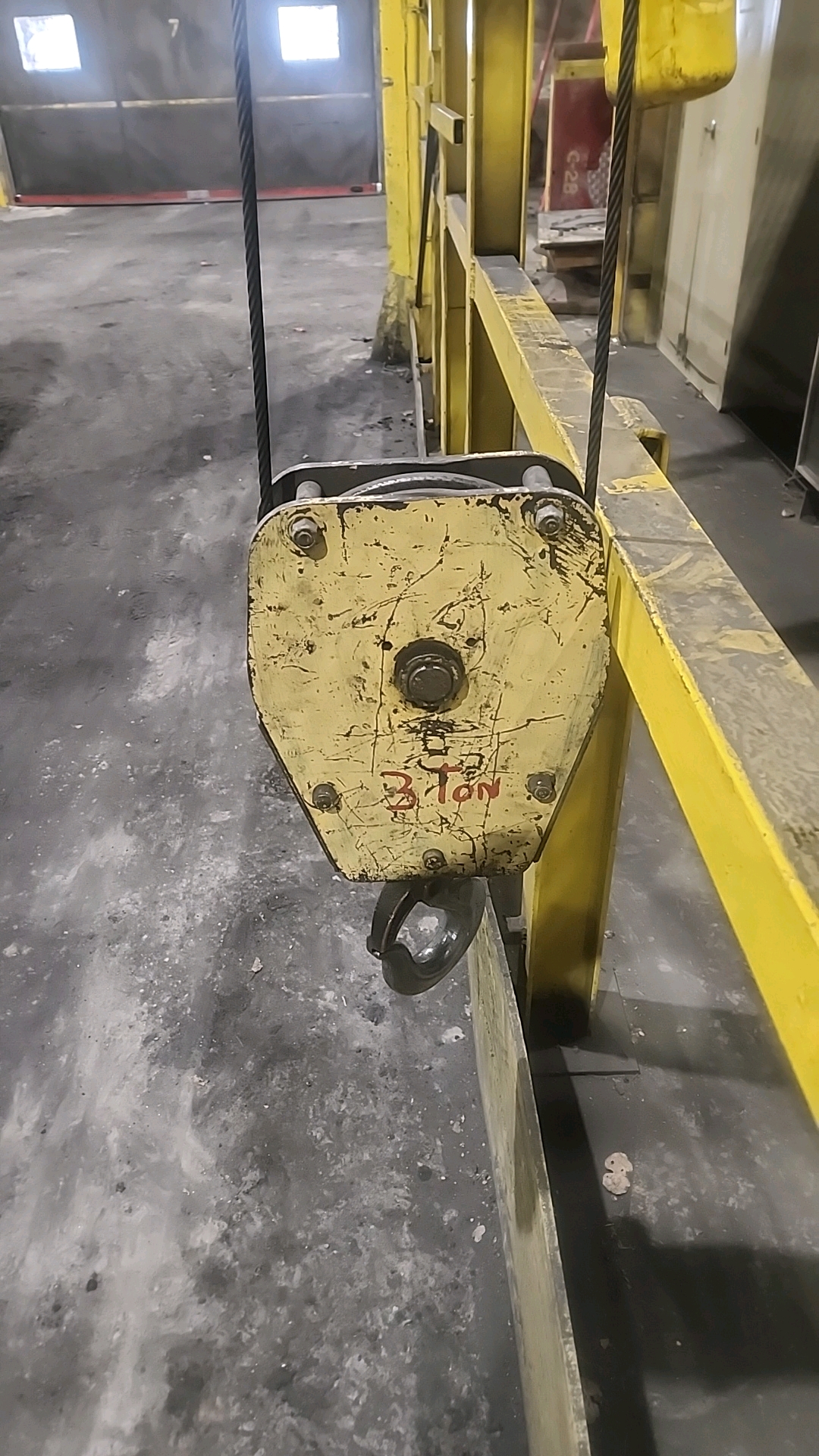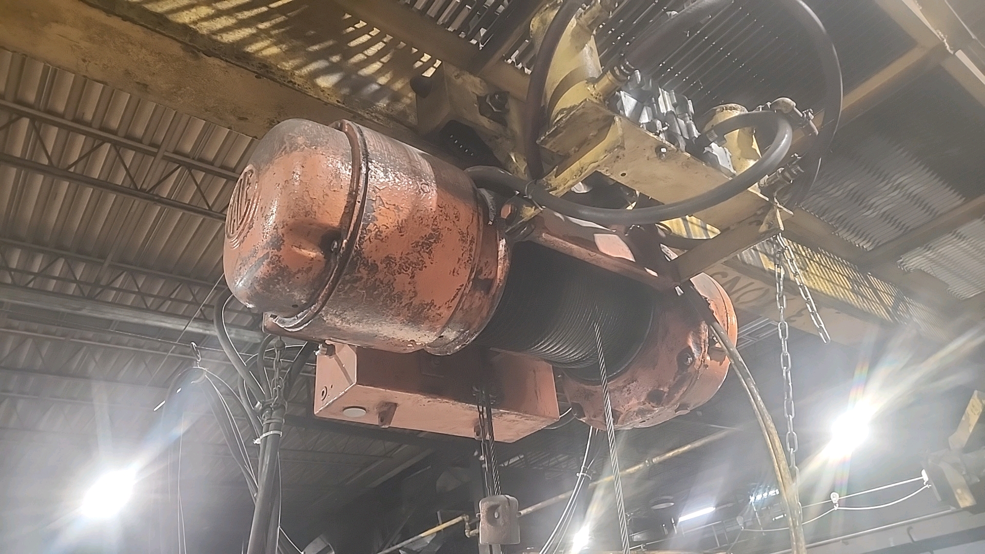 Yale bridge crane, 3-ton cap., wire-rope, underslung, approx. 24 ft. span, 4-axis travel (no. 4) [Loc. Production]