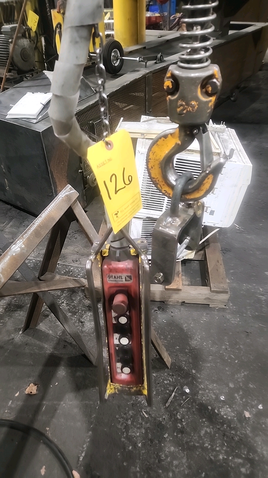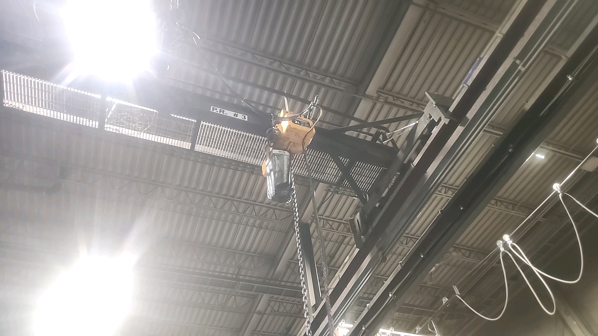 Kito electric chain hoist, 2-ton cap. w/ bridge, 2-MT cap., approx. 16 ft. span, 4-axis travel (no. 3) [Loc. Production]