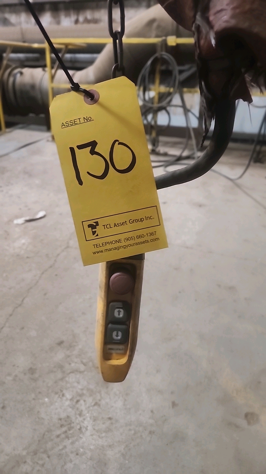 Kito electric chain hoist, 1-ton cap. w/ Gorbel jib crane (no. 1) (2016), 1000 kg cap., 200 in. reach [Loc. Melting/Pouring]
