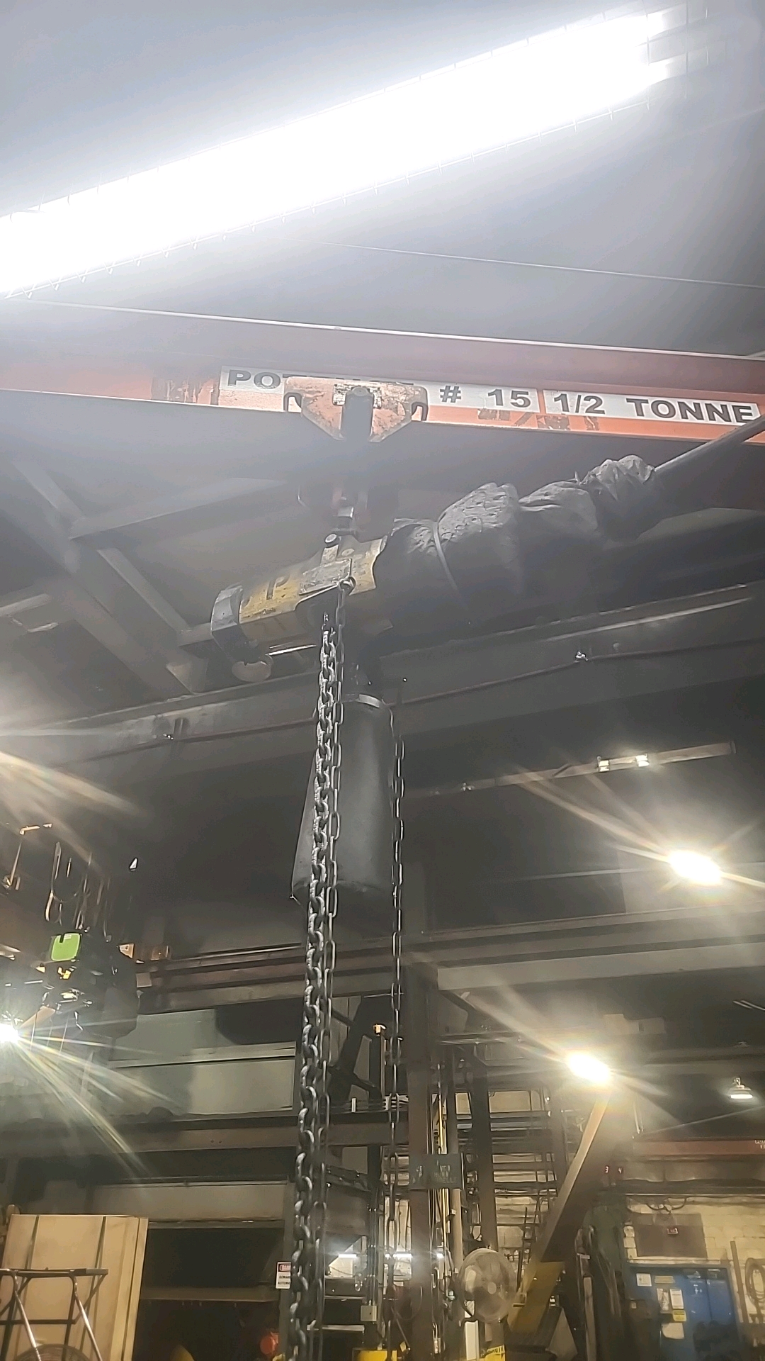 pneumatic chain hoist, 500 Kg cap. w/ manual trolley [Loc. Production]