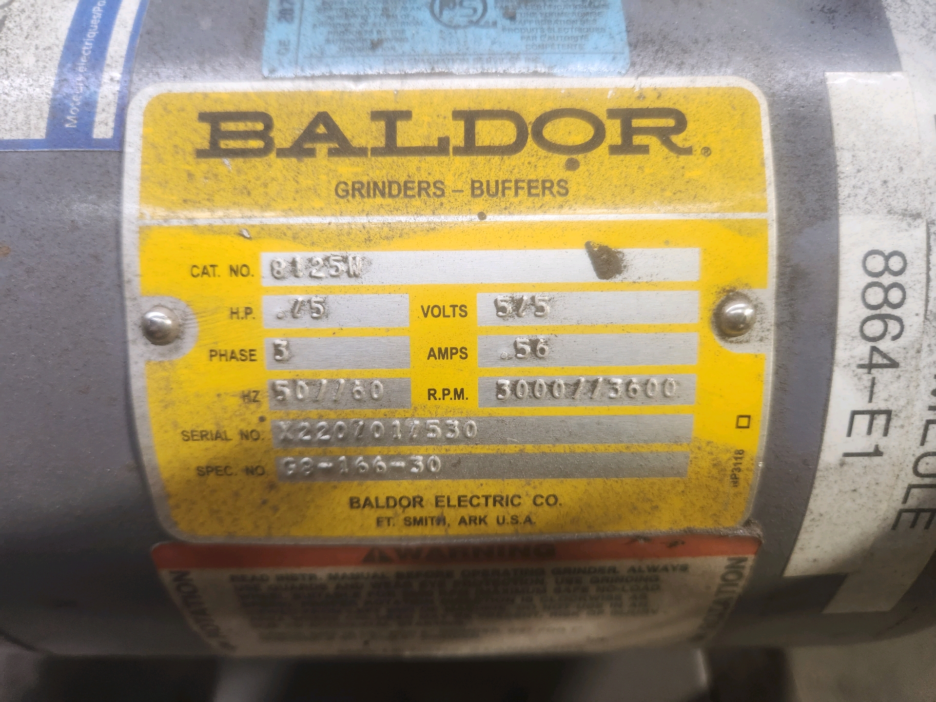 Baldor bench grinder, 3/4 hp [Loc. Weld Shop]