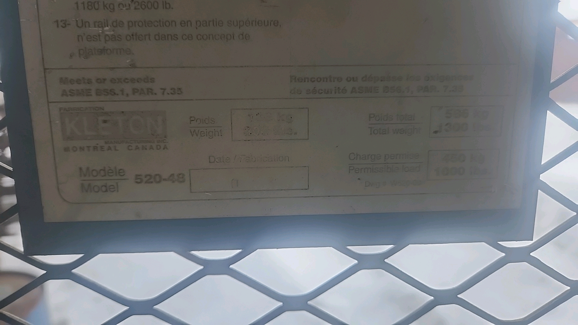Kleton hi-work safety cage, mod. 520-40, 1000 lbs. cap. [Loc. Weld Shop]
