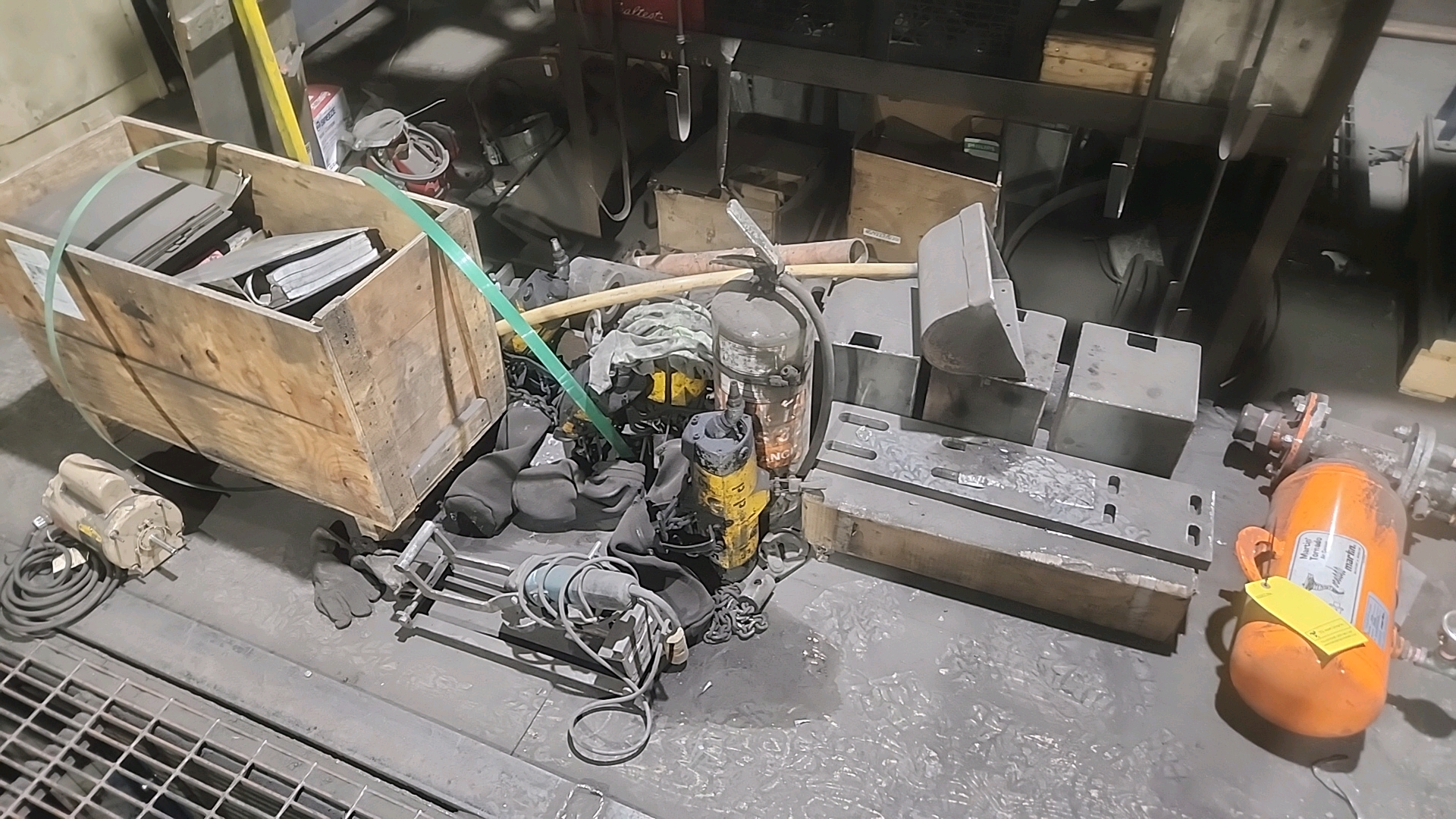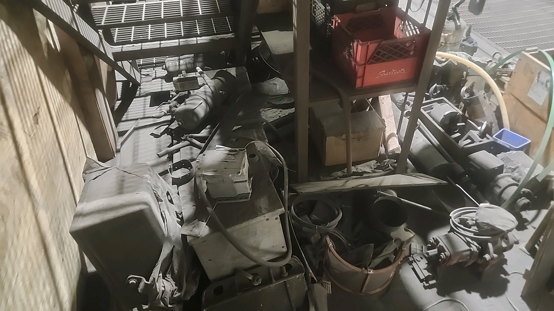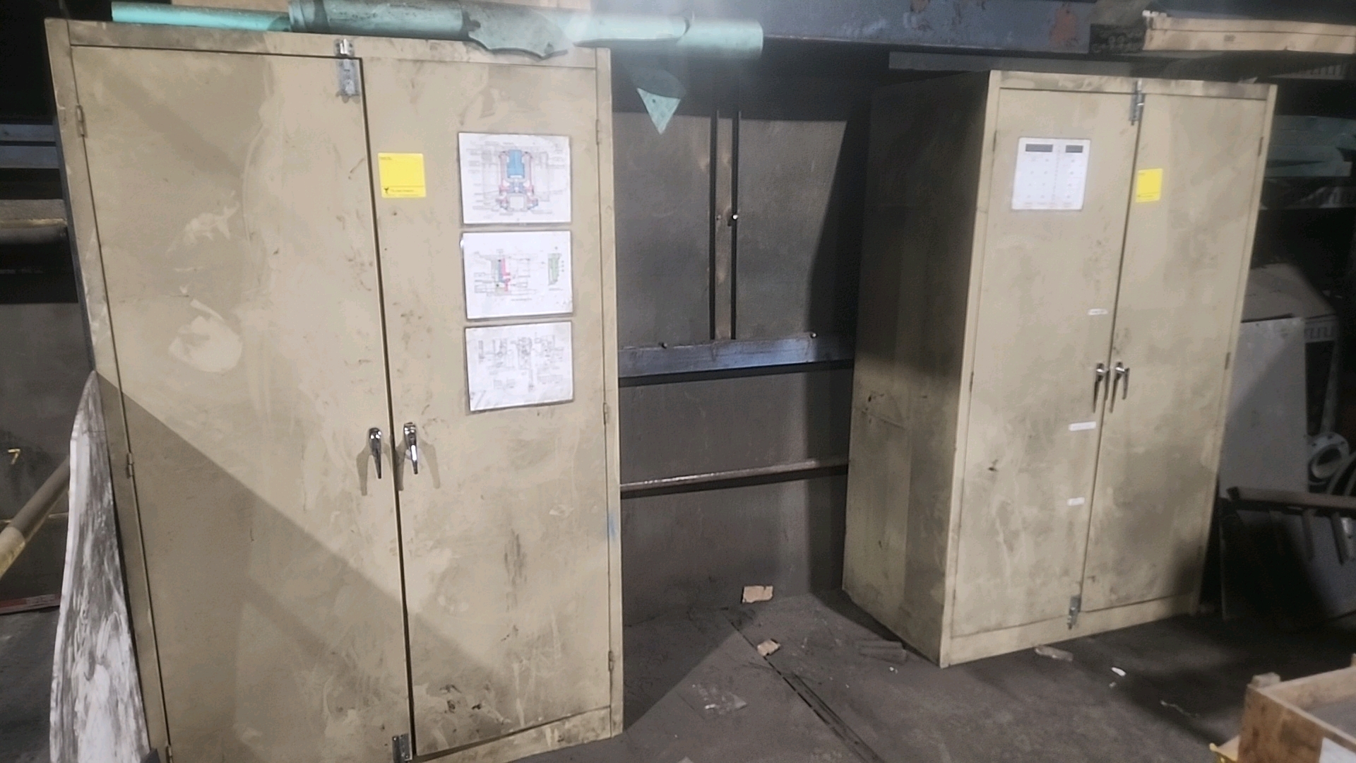 misc. conveyor spare parts, etc. c/w racking and (2) storage cabinets [Loc. Mezzanine]
