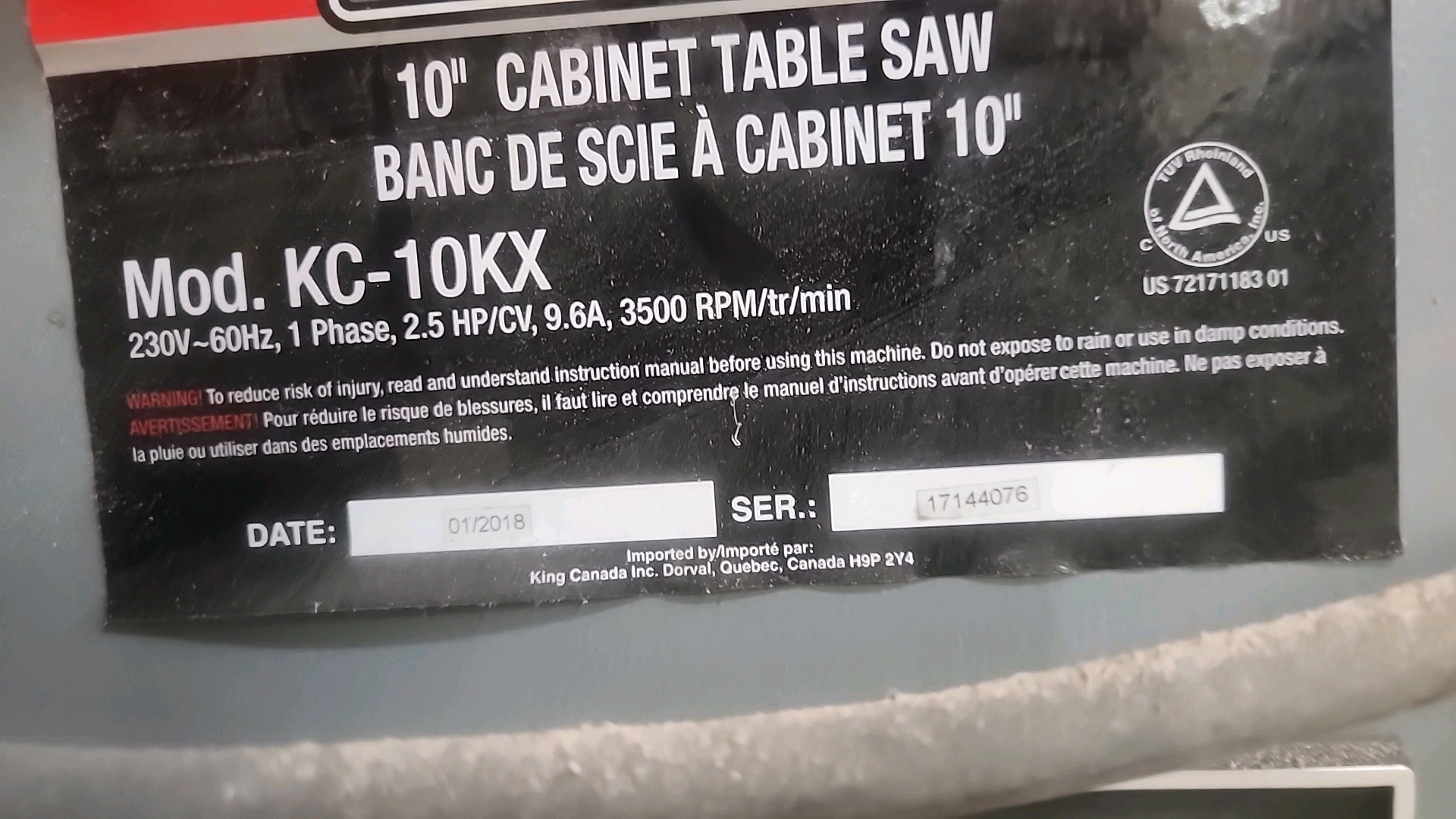 King table saw, mod. KC-10KK, 10 in. [Loc. Carpentry Shop]