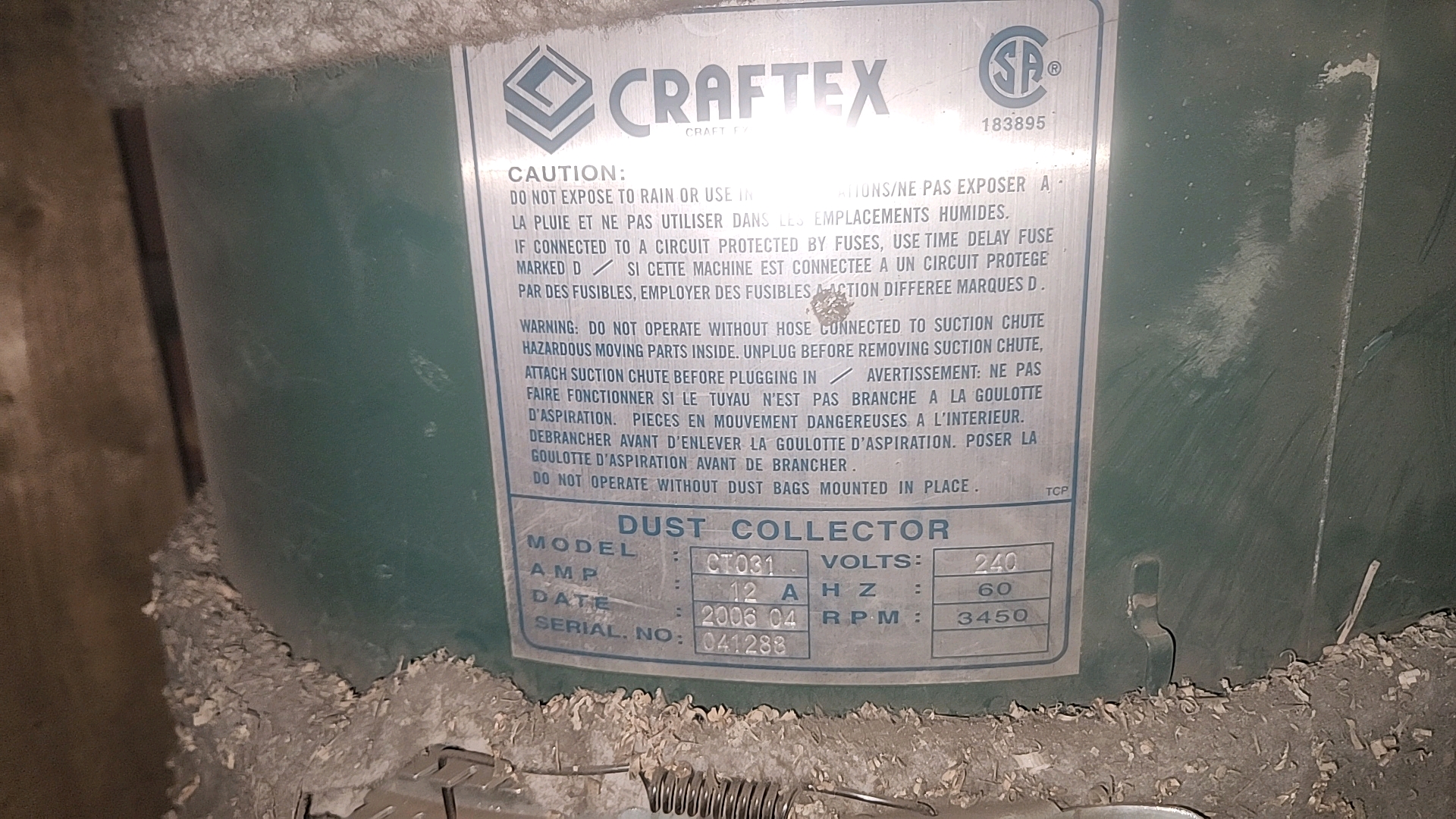 Craftex dust collector, mod. CT031 [Loc. Carpentry Shop]