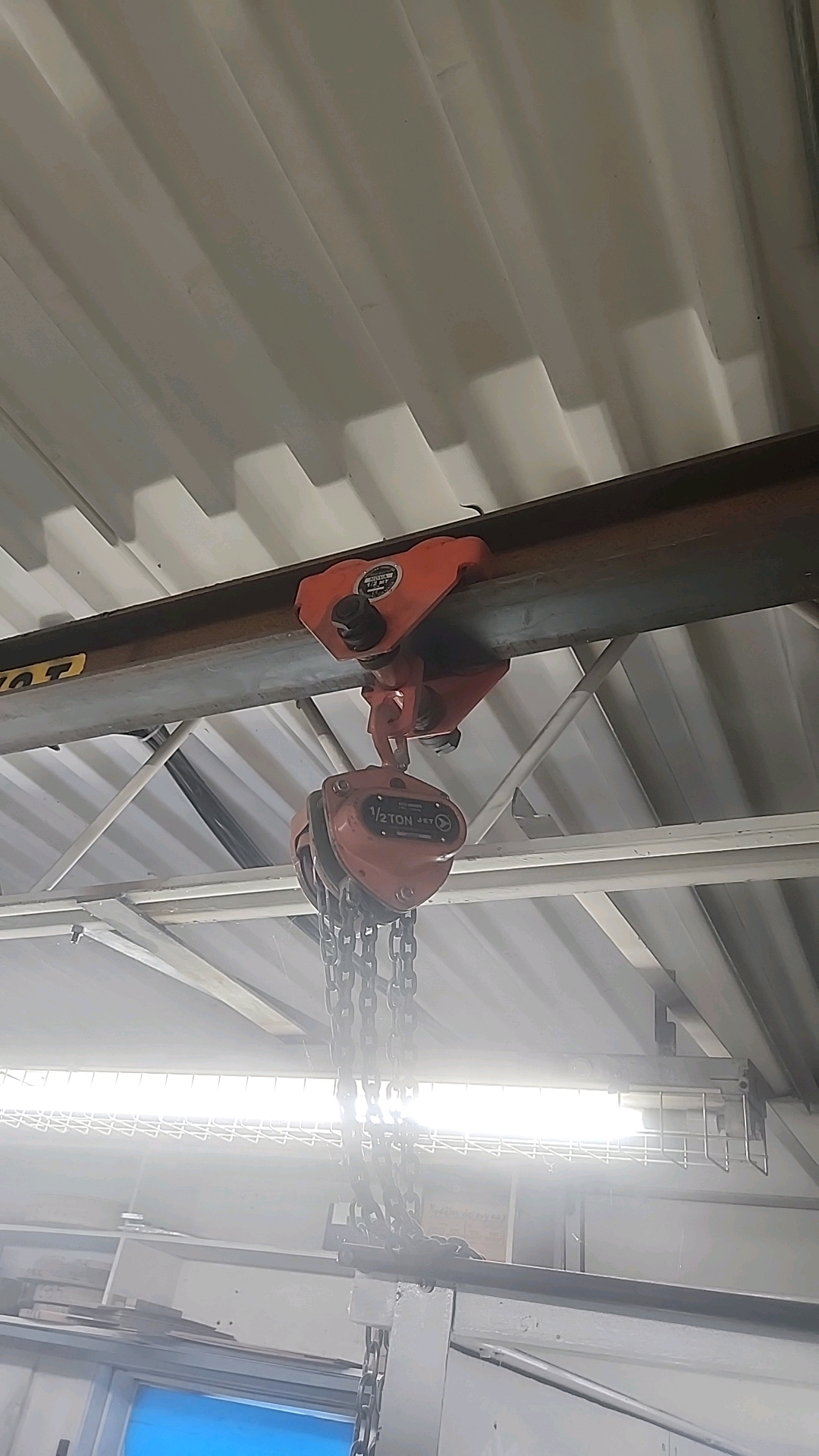 (3) Jet 1/2-ton chain falls w/ manual trolleys [Loc. Carpentry Shop]