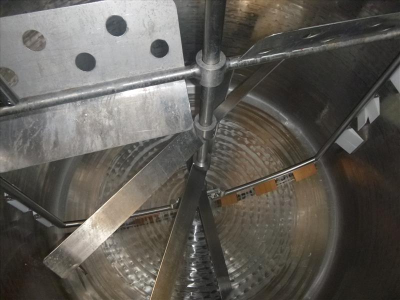 (T1) L'Hoir stainless steel jacketed process mix tank, ASTM A-240 type 316 stainless steel, 4,200 kg. batch, (est. 1, 110 USG), 6 ft. diam. X 5 ft. str. side, dished heads, digital vari. spd. sweep agitator, scraper blades, piping for (2) spray balls, tank 50 psig. & FV, jacket 150 psig., temp. 365 deg. F., shell & head thk. 0.250 in., ser. no . TCV-77103918, steam -heated , water-cooled