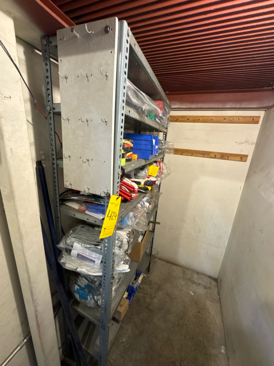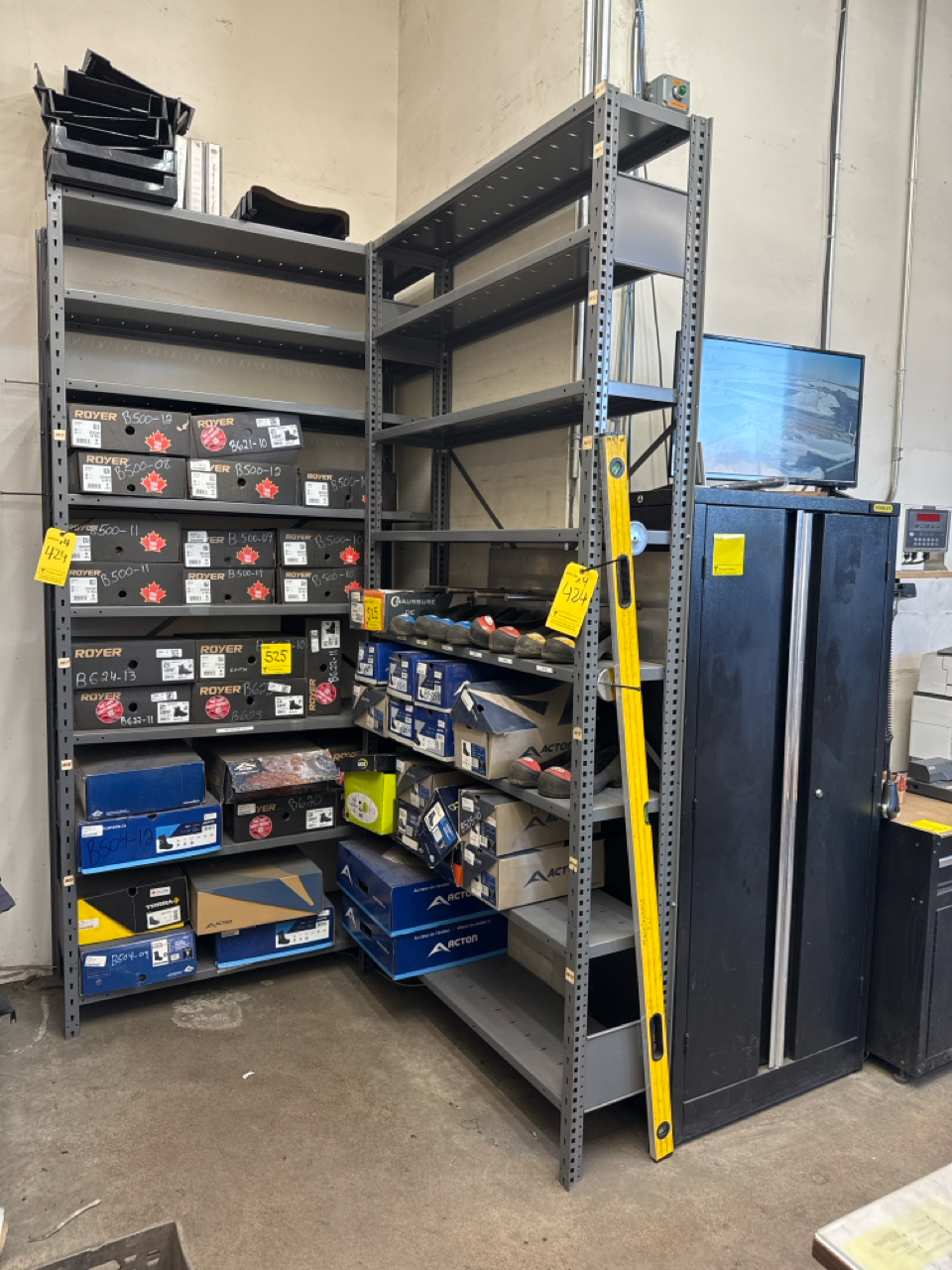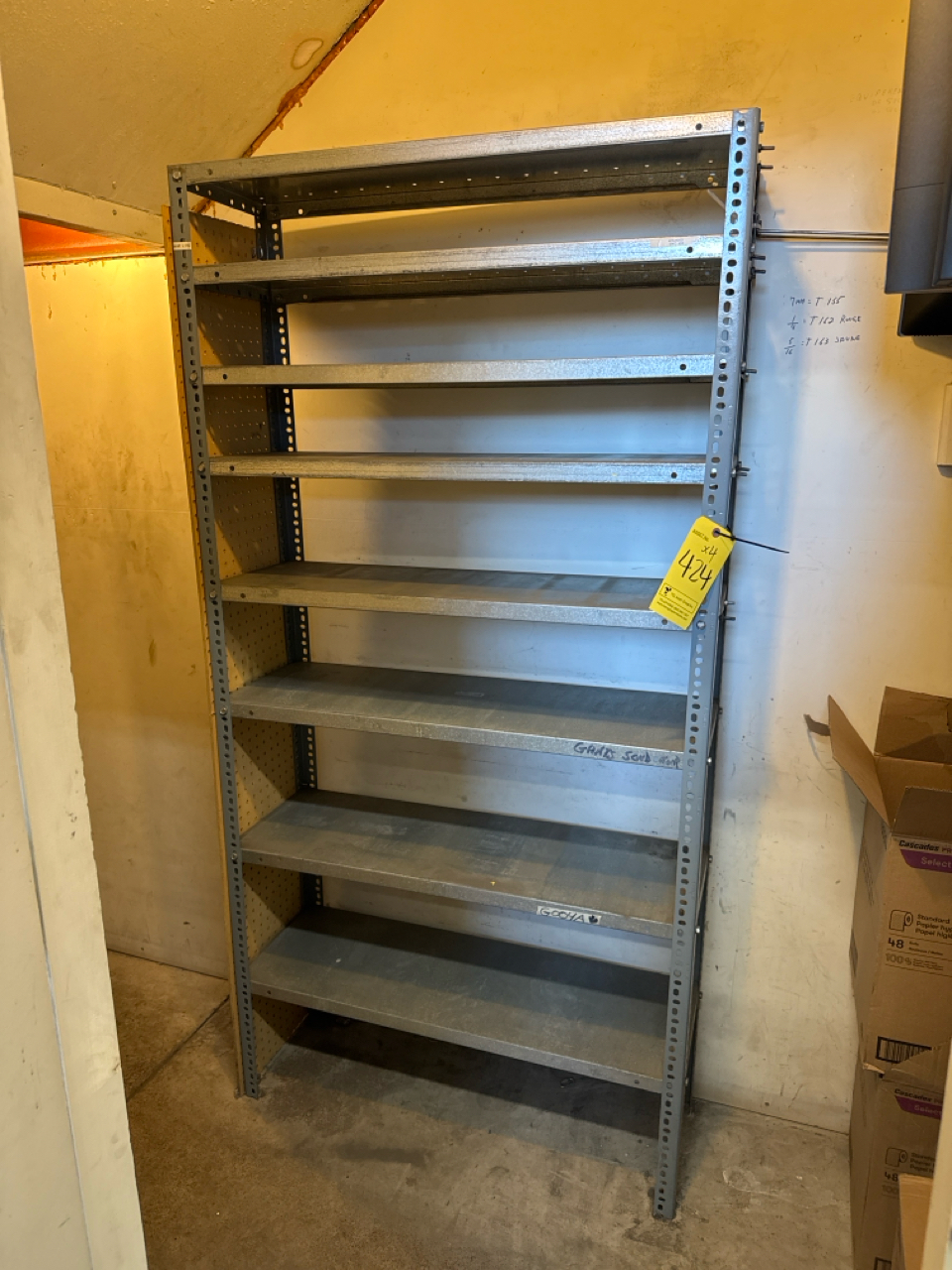(3) metal racks, (1) approx. 8 ft. height x 18 in. depth 4 ft. length, (1) approx. 8 ft. height, 1 ft. depth, 49 in. length, (1) approx. 6 ft. x 3 ft. x 1 ft. (1) 70 in. x 3 ft. x 1 ft. (excluding contents) [Loc. Production]