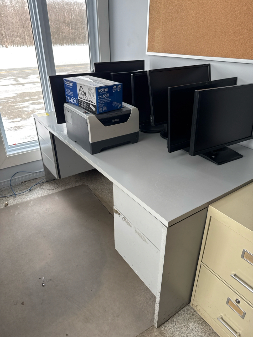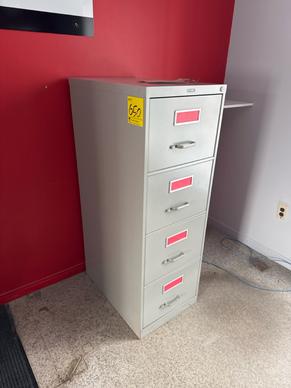 contents of office, incl.: 4 filling cabinets, (1) brown desk approx. 20 inch x 71 inch, (1) grey desk approx. 3 ft x 6 ft, (1) brown L - shape desk approx. 5 ft x 51 inch, Fahrenheit water cooler (furnishing only: contents, IT equipment, computers, and printers are not included) [Loc. Sales Offices]