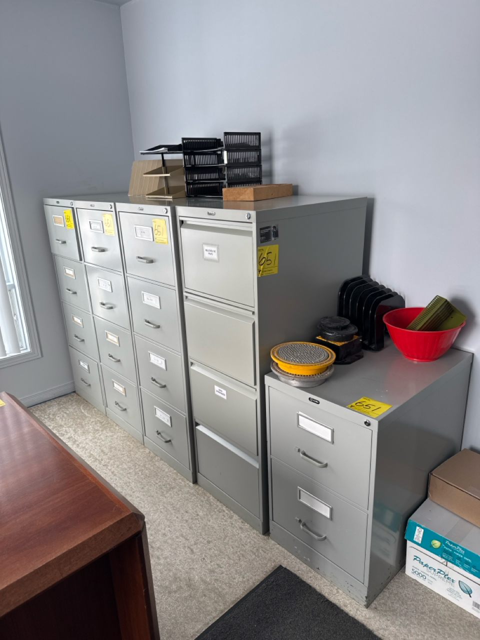 contents of office, incl.: (6) filling cabinets, brown desk, black cabinet, (2) black chairs, standing single door (furnishing only: contents, IT equipment, computers, and printers are not included) [Loc. Sales Offices]