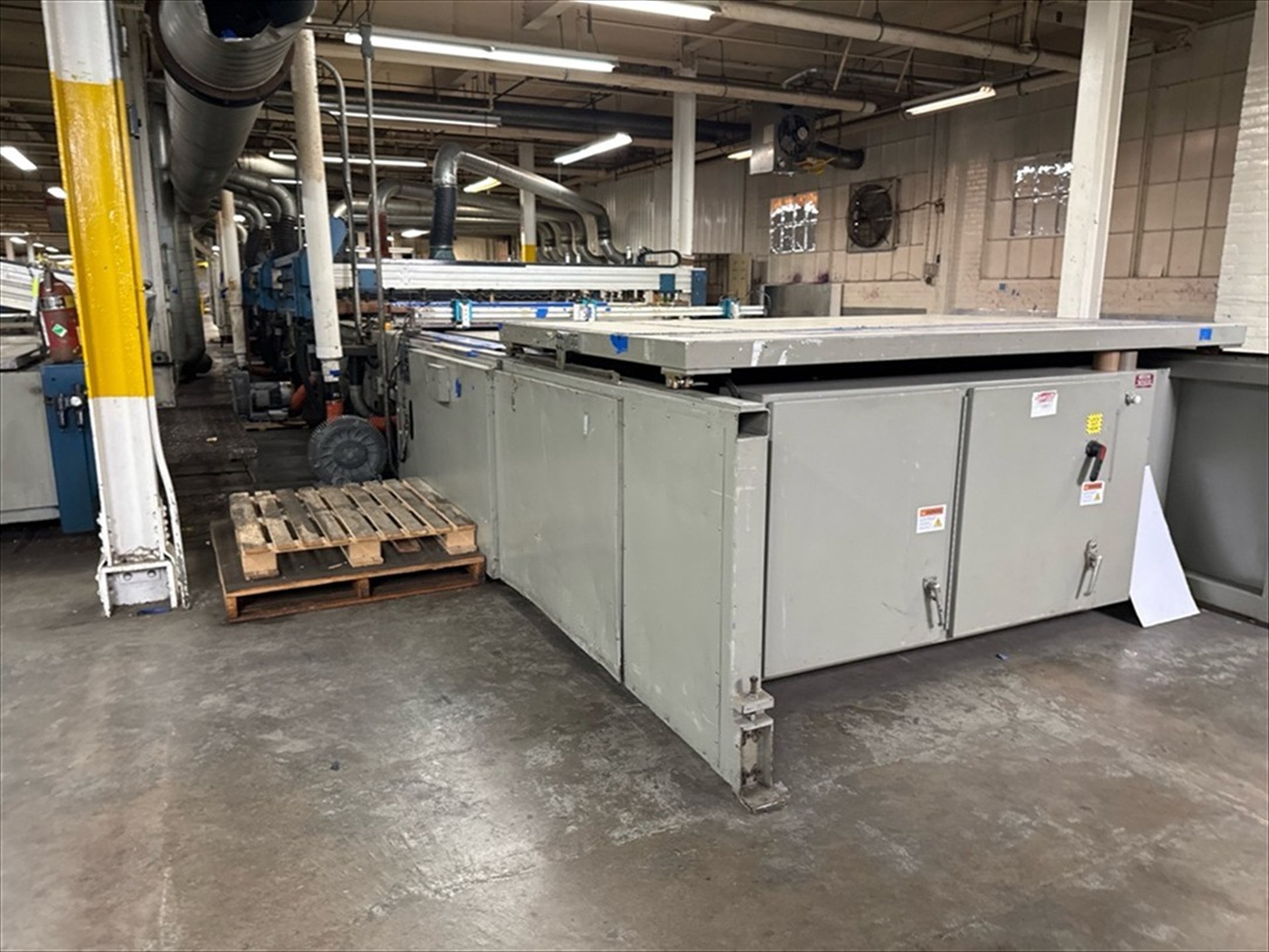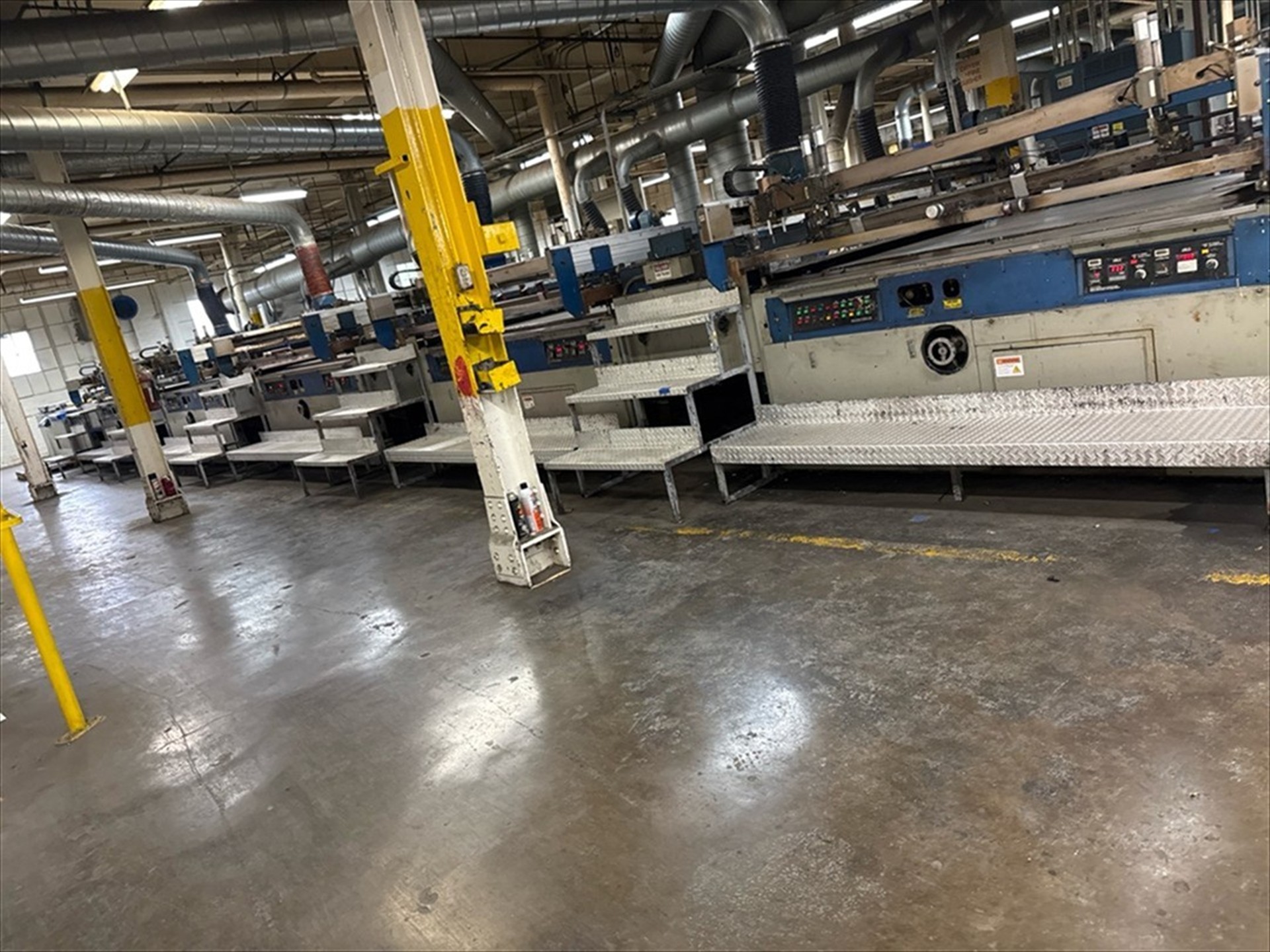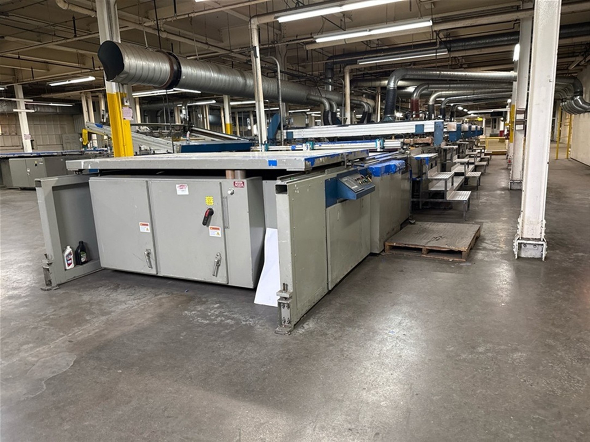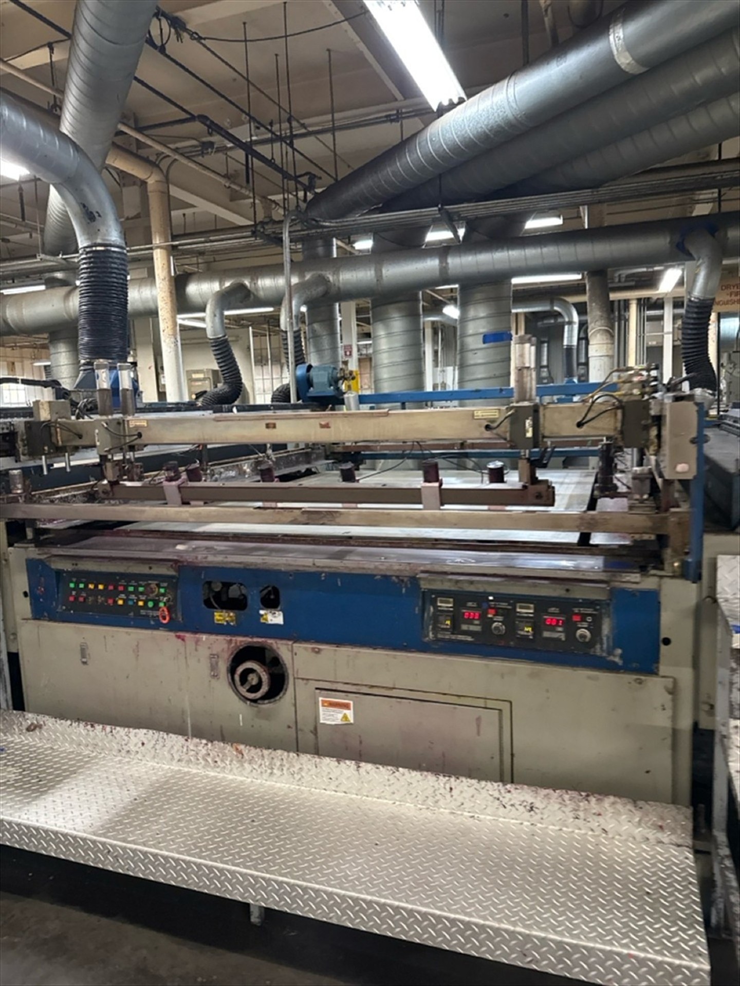 M and R Mod. HPP6480-5/10UV Screen Printer, Automatic, 5-Color, In-Line, E900 Digital Control System, UV Dryer After Each Print Section, Approximately 64 in. X 80 in. Print Areas, W/ Exhaust Blowers (5) New York Blowers (4) Siemens Vacuum Blowers, Ser. No. 069936321H (1999) with spare parts which may include Spare mechanical parts, Pnuematic parts, Pneumatic cylinders, input and output parts, UV control boards, UV bulbs [Loc. Greenwich, Flr. 3]