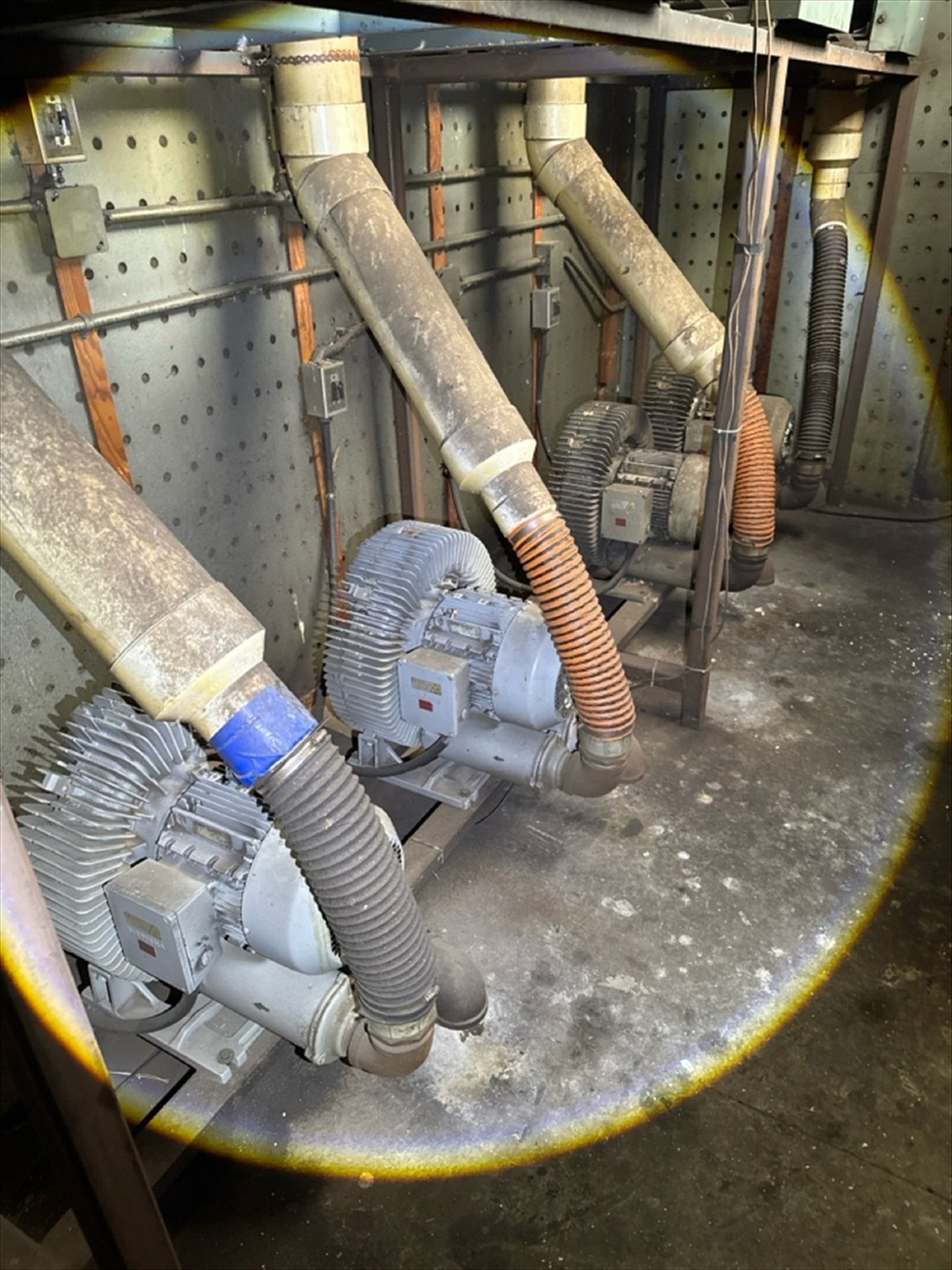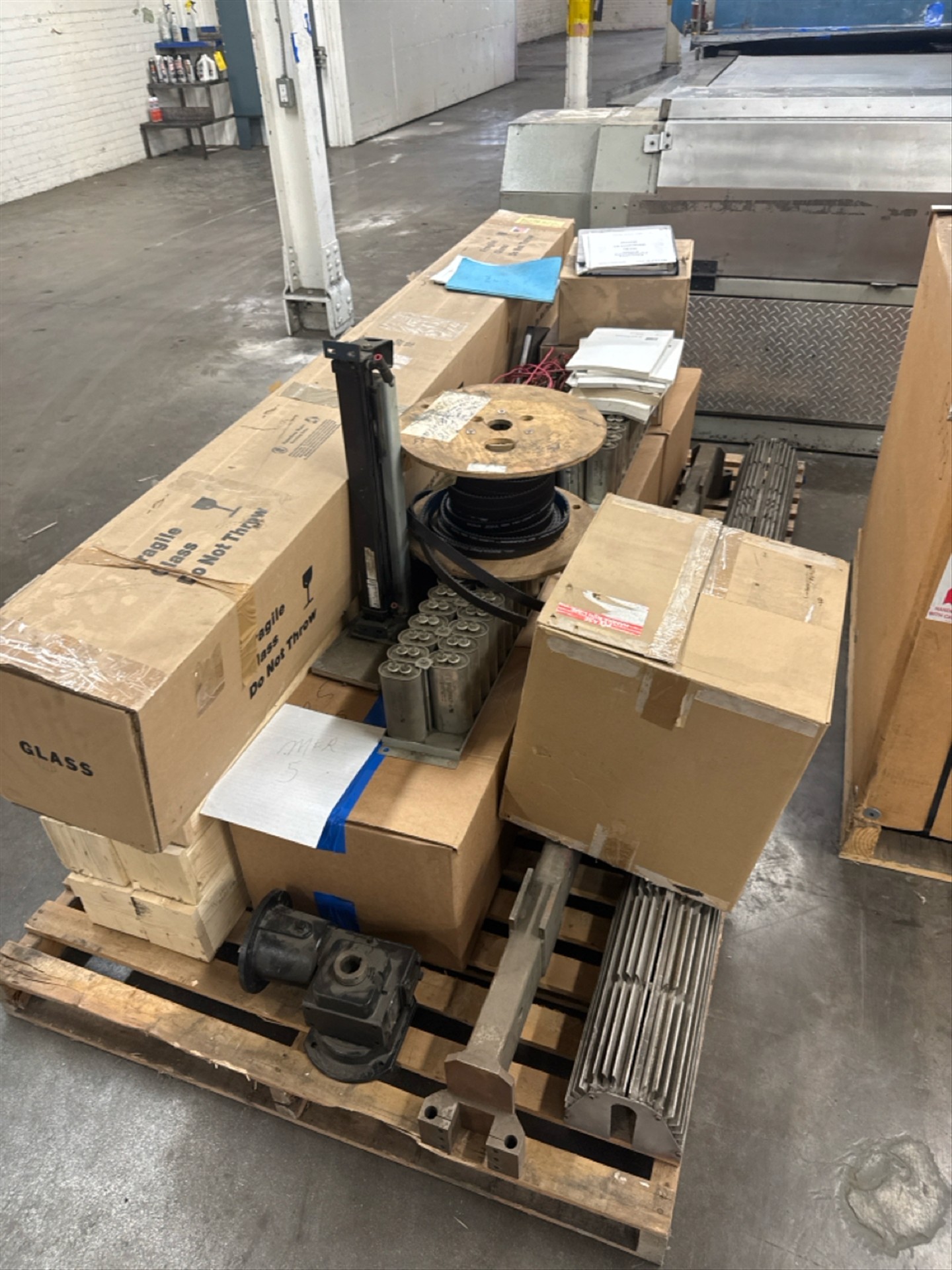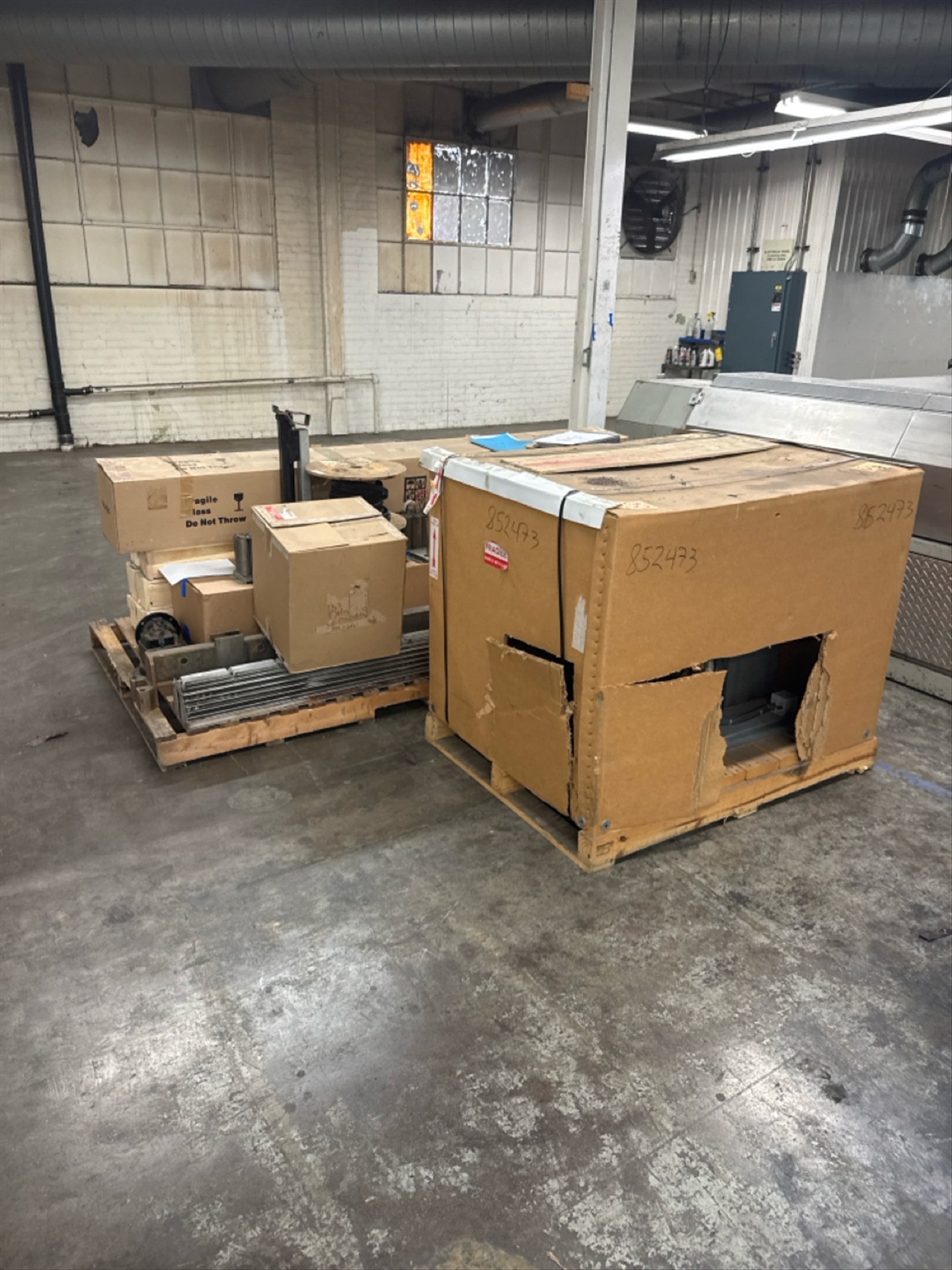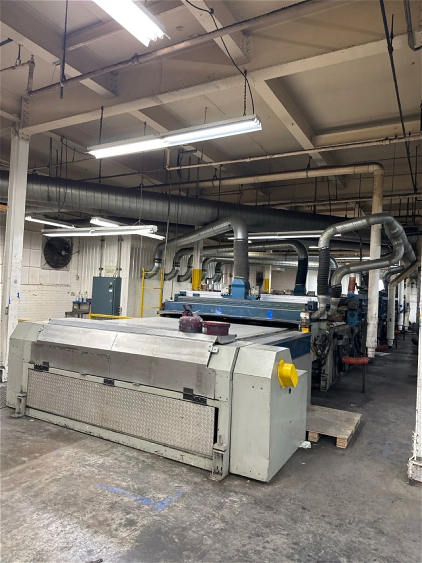M and R Mod. HPP6480-5/10UV Screen Printer, Automatic, 5-Color, In-Line, E900 Digital Control System, UV Dryer After Each Print Section, Approximately 64 in. X 80 in. Print Areas, W/ Exhaust Blowers (5) New York Blowers (4) Siemens Vacuum Blowers, Ser. No. 069936321H (1999) with spare parts which may include Spare mechanical parts, Pnuematic parts, Pneumatic cylinders, input and output parts, UV control boards, UV bulbs [Loc. Greenwich, Flr. 3]
