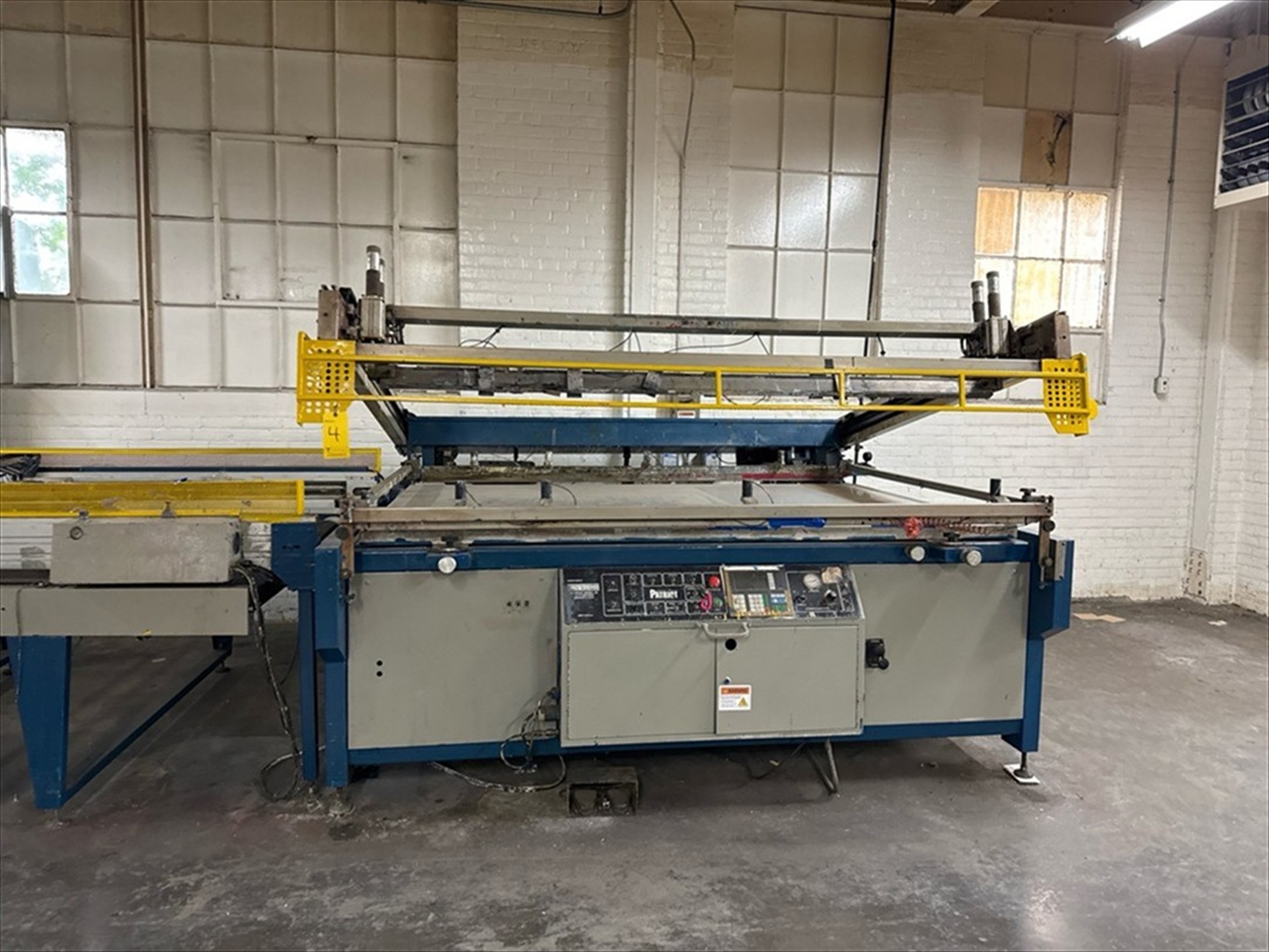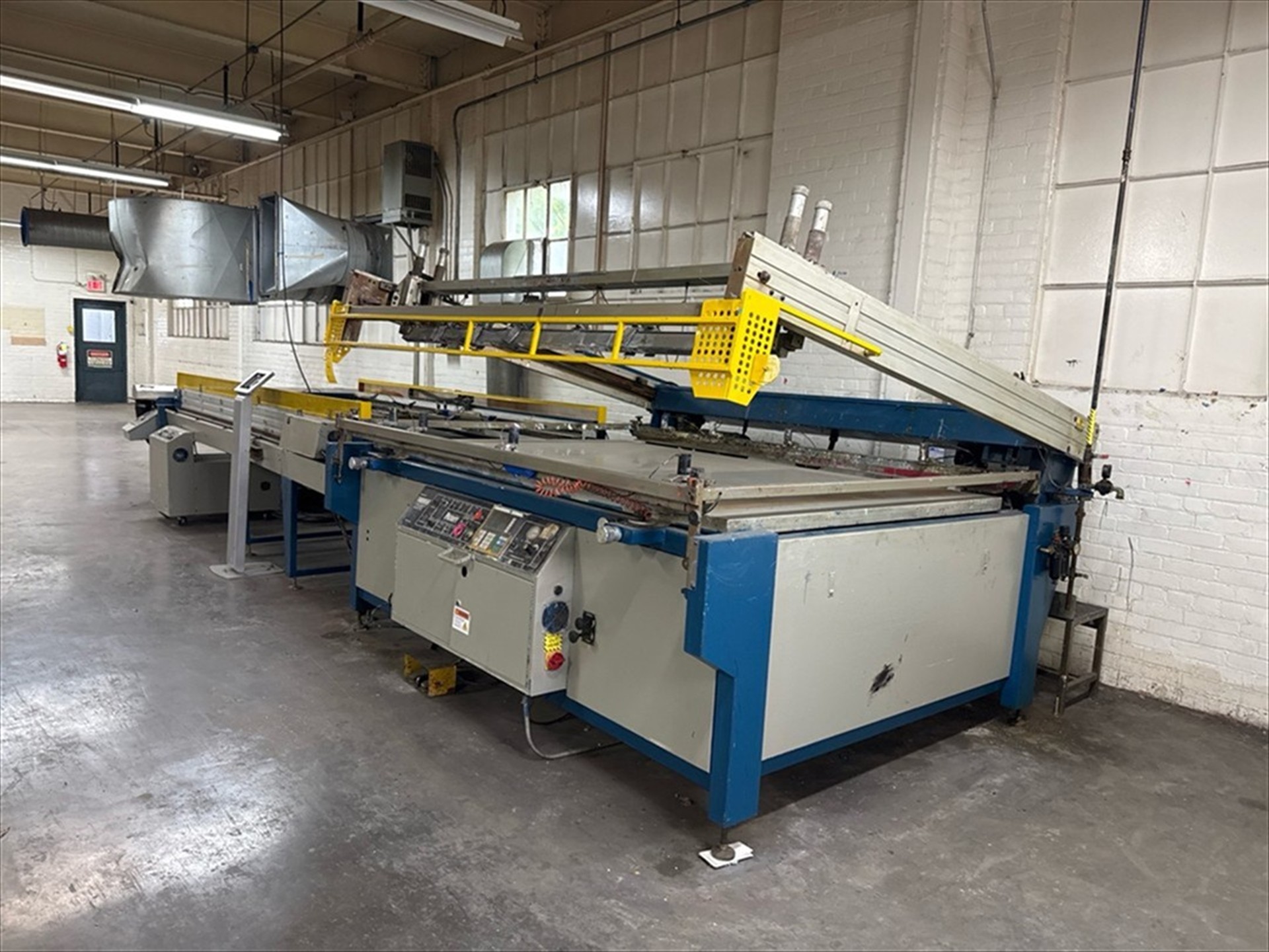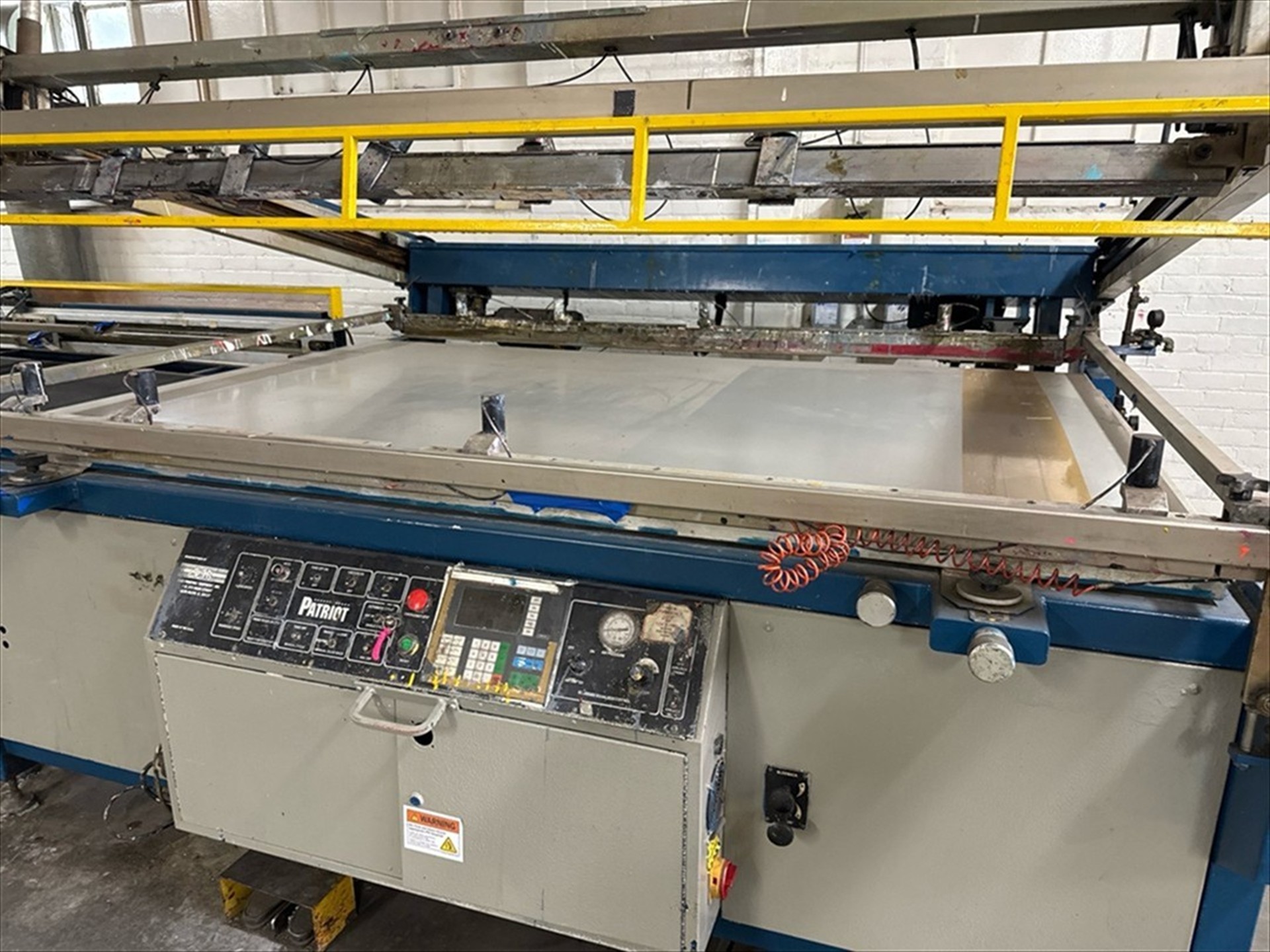 M and R Mod. Patriot 52x84-To Screen Printer, 52 in. X 84 in. Print Area, W/ 15 ft. Mesh Conveyor, MTA-G1 Control, Vitran UV Dryer, Ser. No. 069627732P (1996) with spare misc. parts[Loc. Greenwich, Flr. 3]