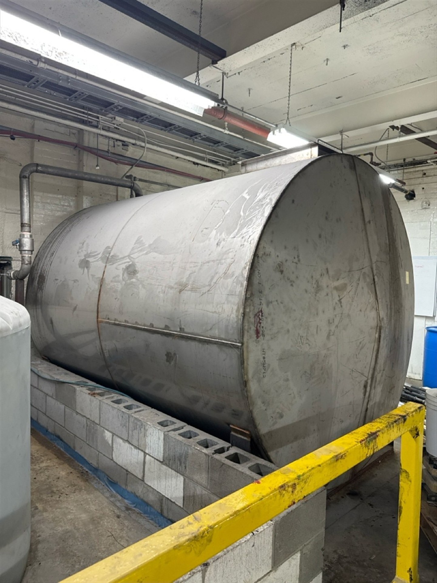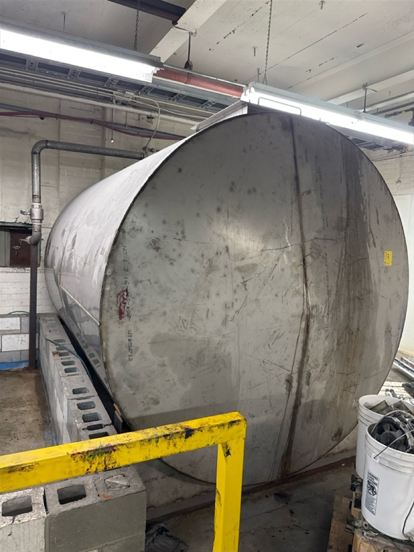 Horizontal Holding Tank, 3,500-Gallon Cap., Stainless Steel, Dished Ends, Approximately 8 ft. Diameter X 10 ft. L, Mounted On Saddles [Loc. Greenwich, Flr. 1]