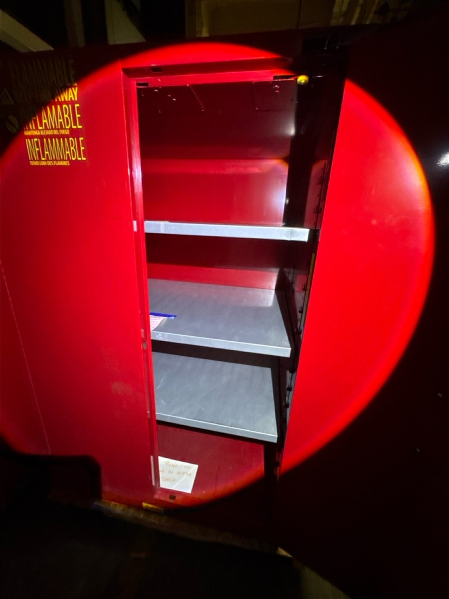 Uline Flammables Cabinet, Mod. H-2219S-R, 90 Gal. Cap. [Loc. Greenwich, Flr. 3]