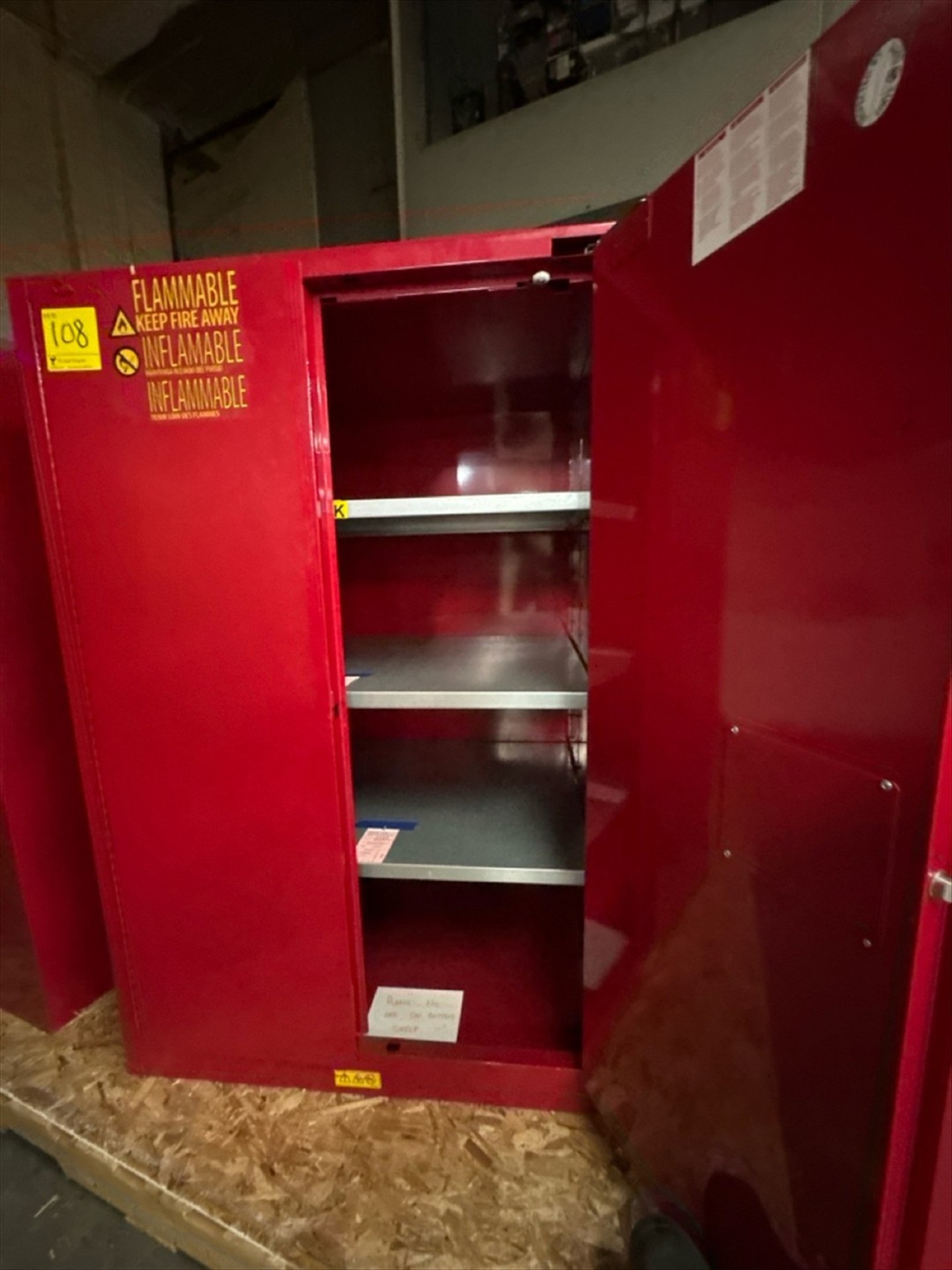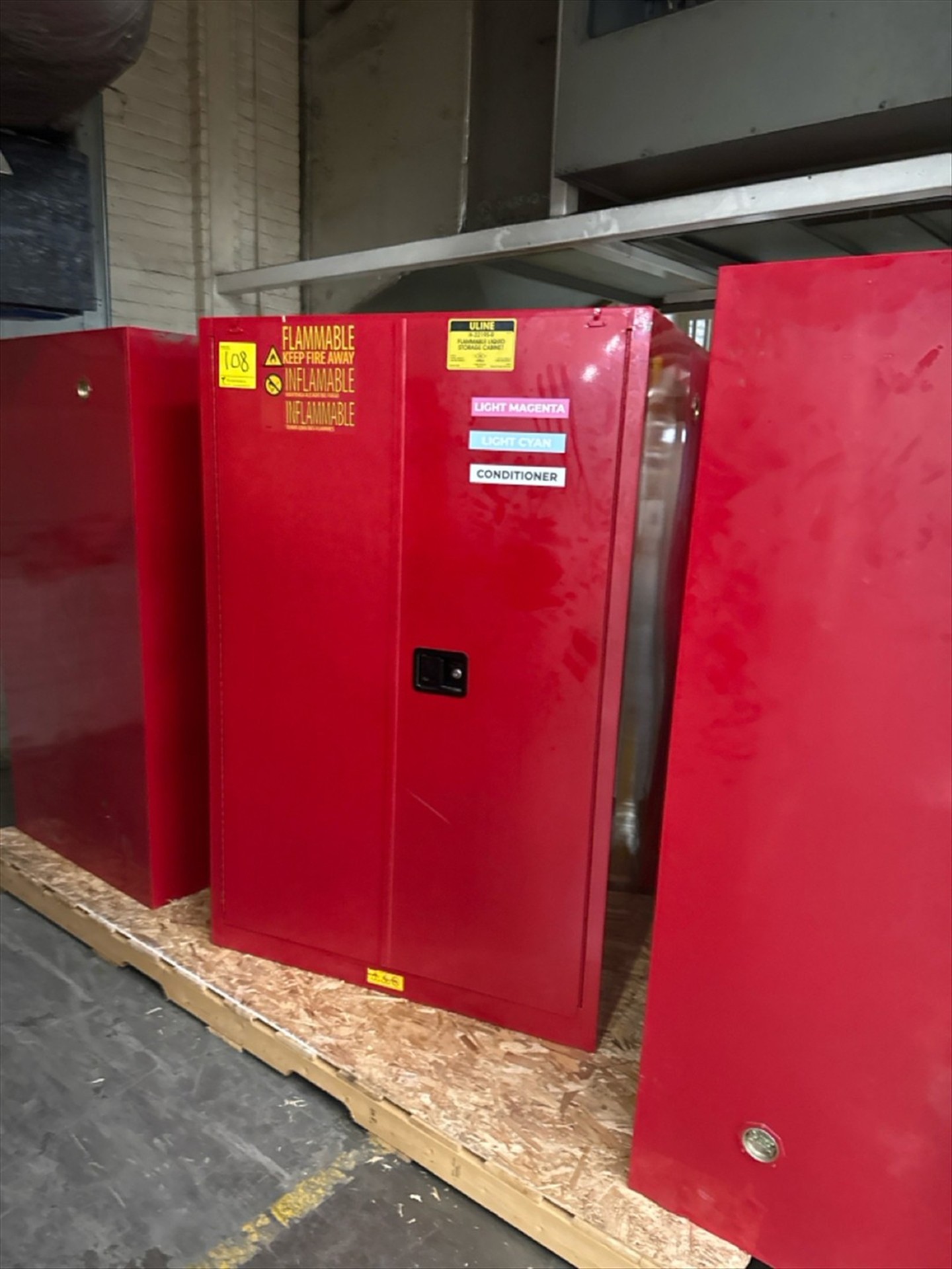Uline Flammables Cabinet, Mod. H-2219S-R, 90 Gal. Cap. [Loc. Greenwich, Flr. 3]