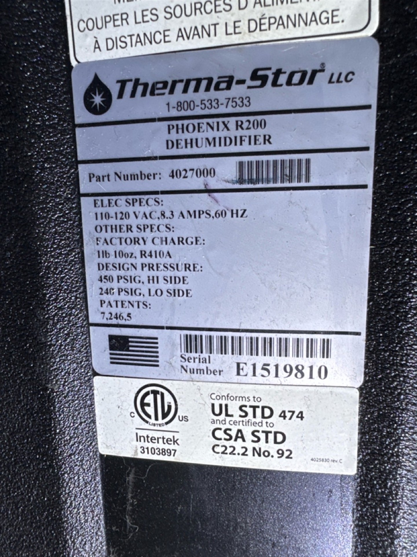 Therma-Stor Phoenix R200 LGR Dehumidifier [Loc. Greenwich, Flr. 2]
