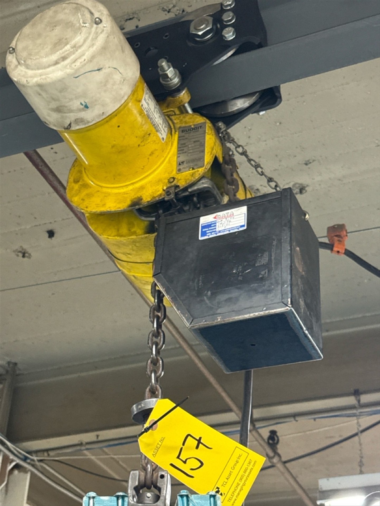 BUDGIT ELEC. CHAIN HOIST, 1-TON CAP. W/BEAM TROLLEY [Loc. Greenwich, FLR. 1]