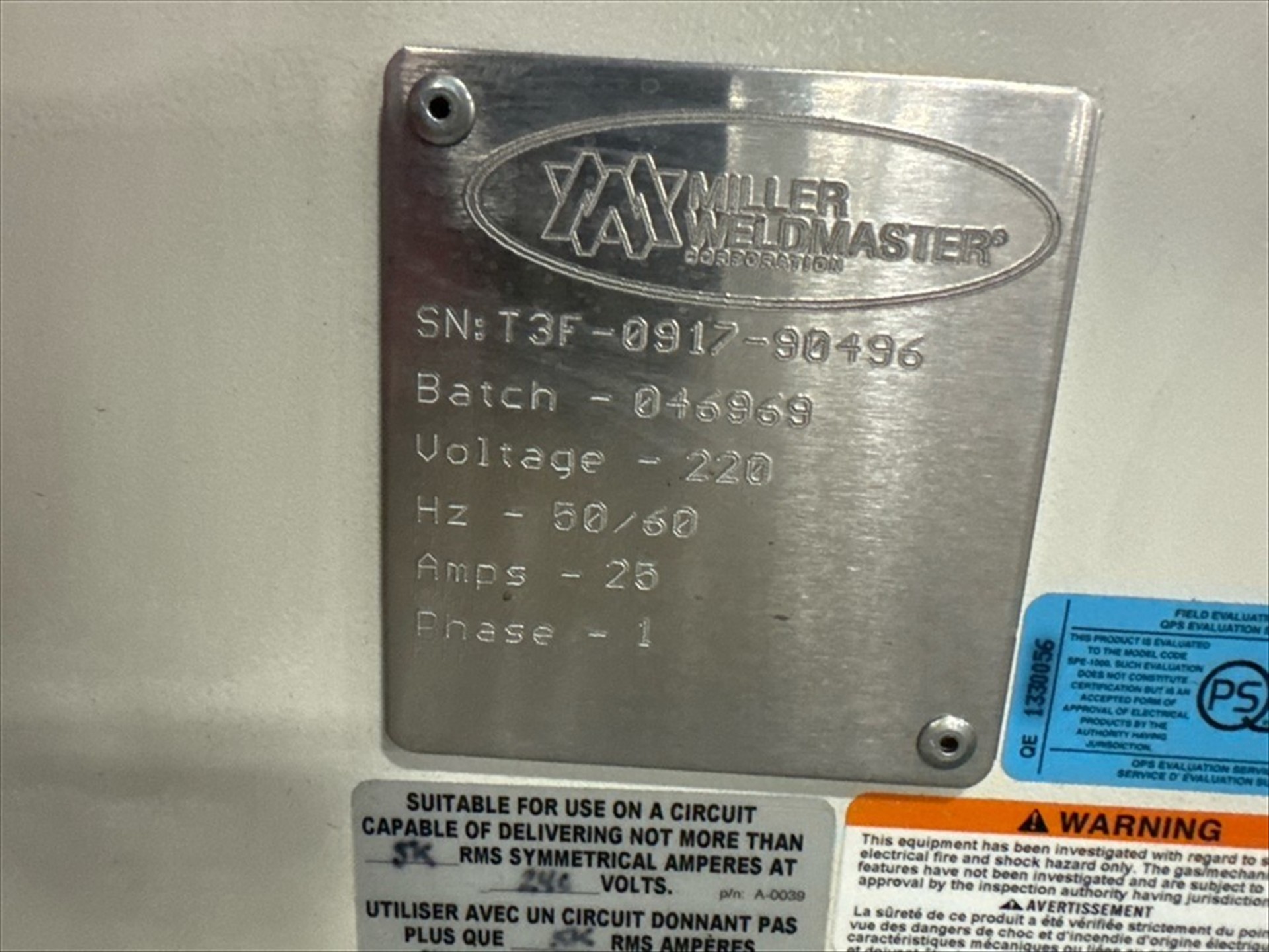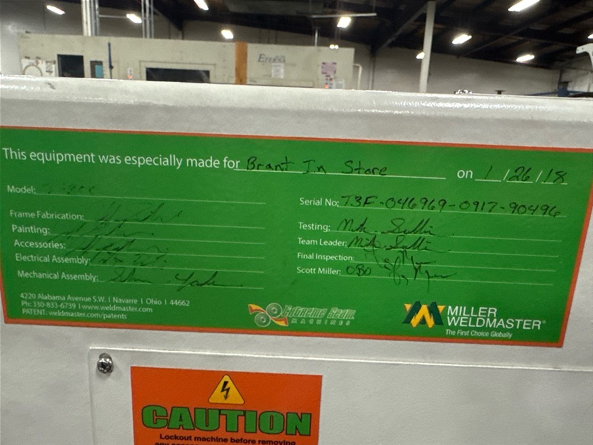 Miller Mod. Weldmaster T300 Welder, Edge Banner and Sign Type, Air Welding Machine, 36 in. Throat, Foot Pedal Control, Delta Screen Control, Ser. No. T3f-046969-0917-94096 (2017) [Loc. Henry]