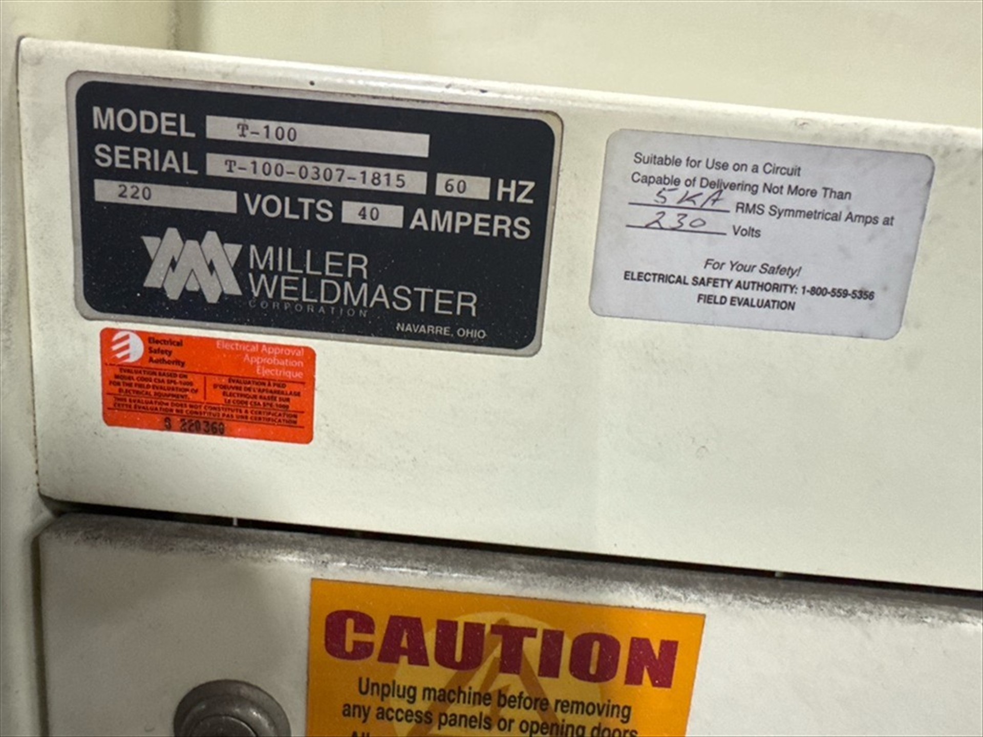 Miller Mod. Weldmaster T100 Seam Welder, Provital Plastic and PVC, Rotary Heat Welder [Currently Not In Use Under Tarp] Ser. No. T-100-0307-1815 (2007) [Loc. Henry]