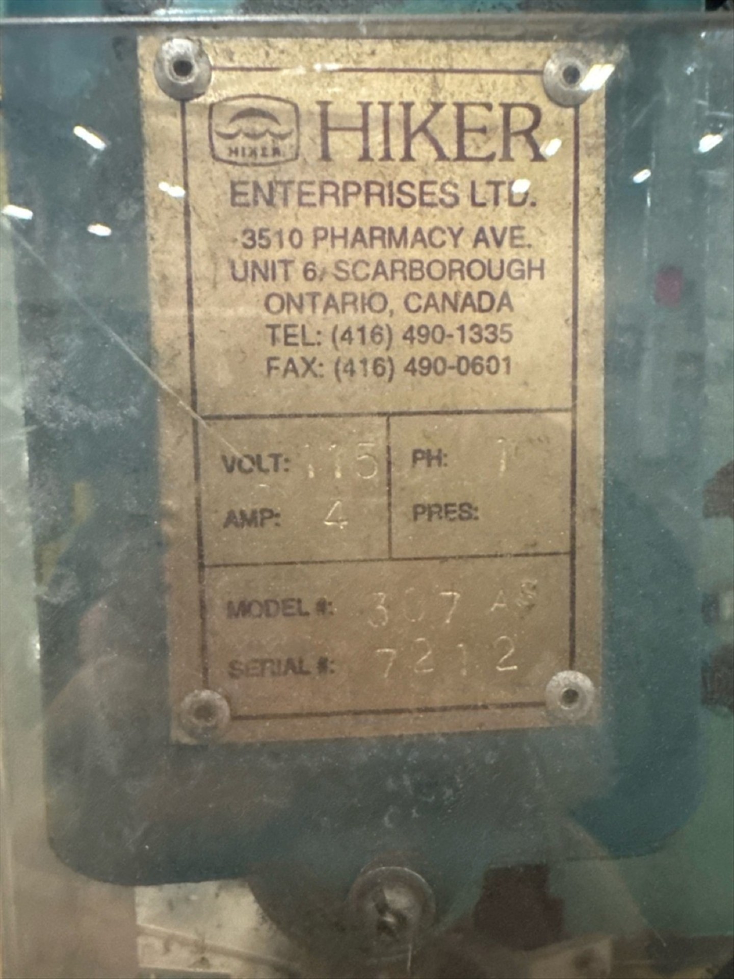 Hiker Mod. 307AS Eyelet / Grommet Machine [On Skid In Warehouse, Not In Use], Ser. No. 7212 [Loc. Henry]