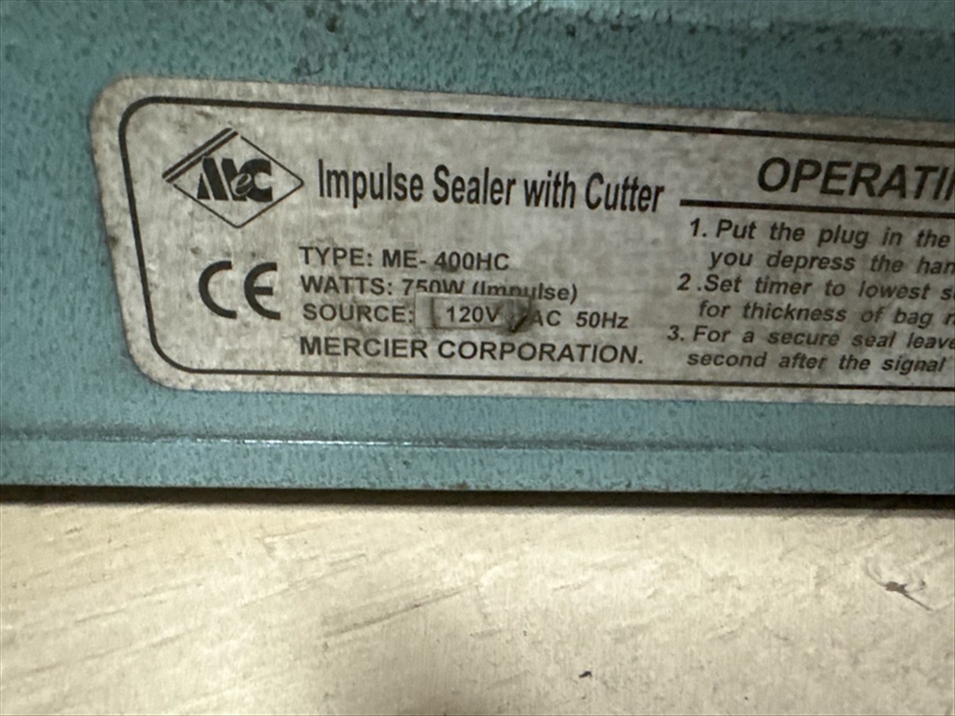 Cleanpac Mod. ME-400HC Impulse Sealer W/Cutter, 16 in. [Loc. Henry]